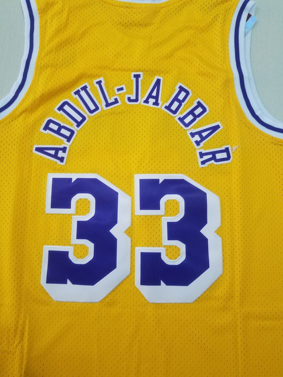 - Men's Kareem Abdul-Jabbar #33 Jersey Lakers 1984/85 Throwback Gold Uniform