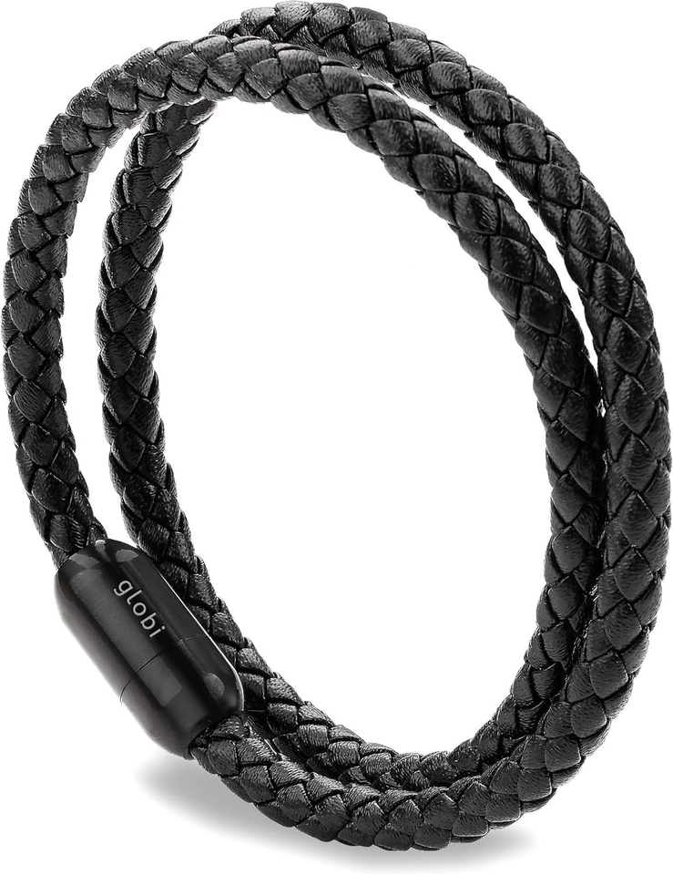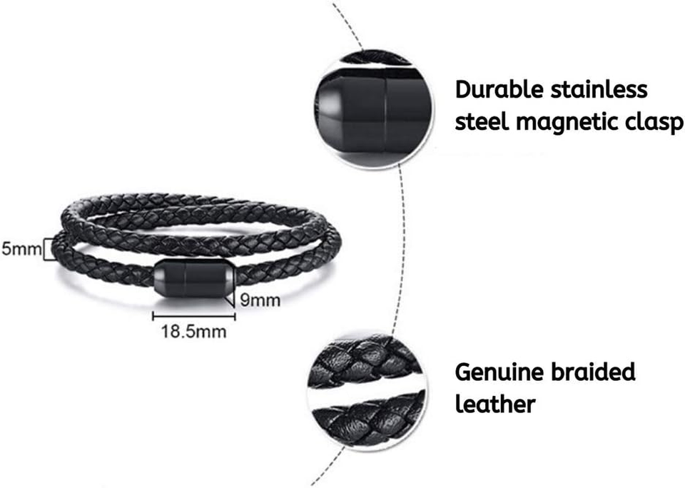 - Men's Leather Bracelet Braided Cuff | Magnetic Clasp | Wrap Wristband Unisex