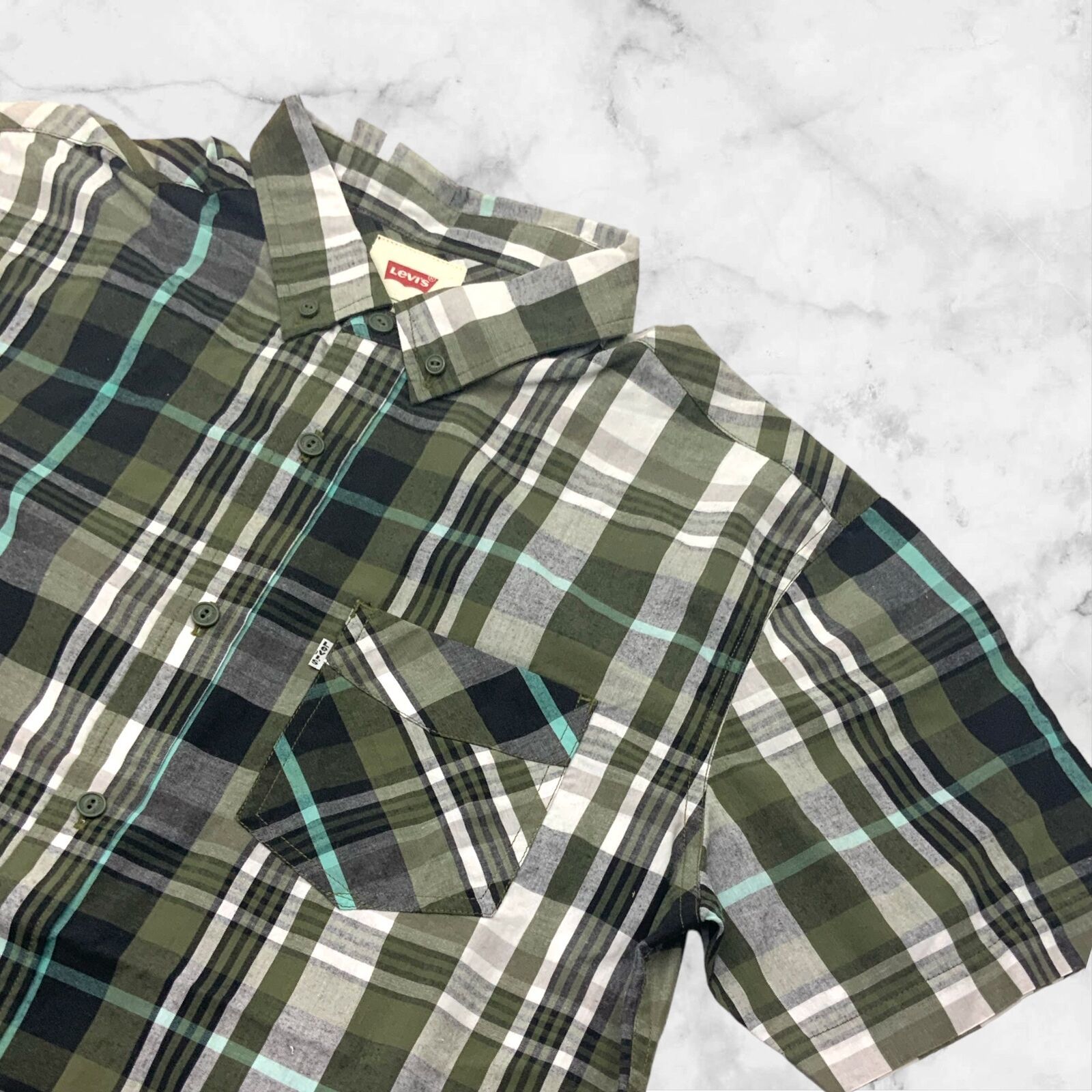 - Men's Levi's Moss Green | Black | Turquoise Plaid Button Down S/S Shirt NWT