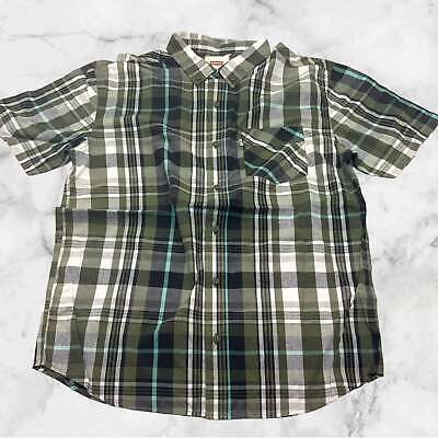 Men's Levi's Moss Green | Black | Turquoise Plaid Button Down S/S Shirt NWT