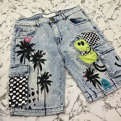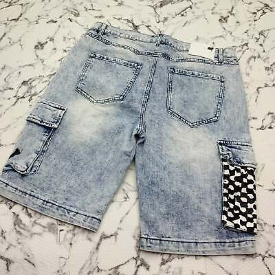 - Men’s Maison Noir Blue Stone Wash Cargo Denim Shorts NWT