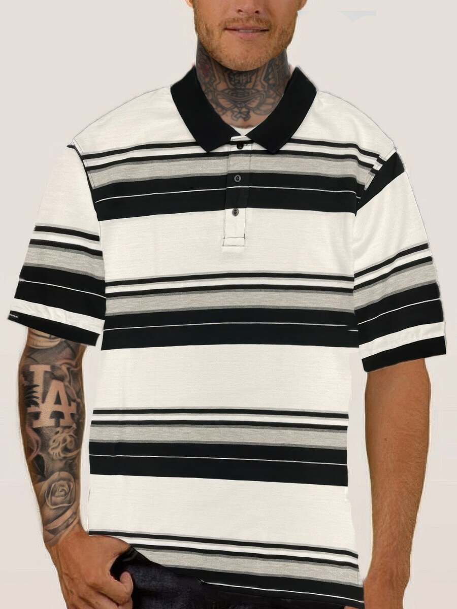 - Men's Old School Striped Pique Polo Shirt