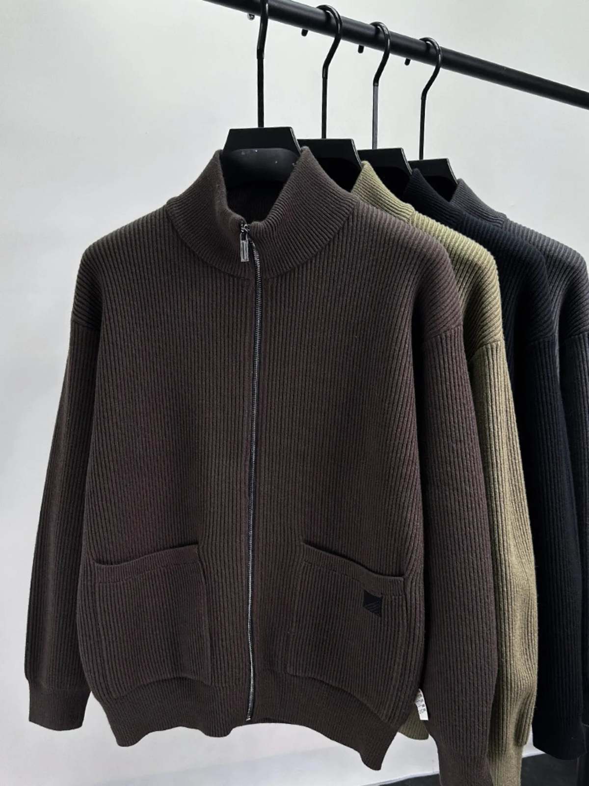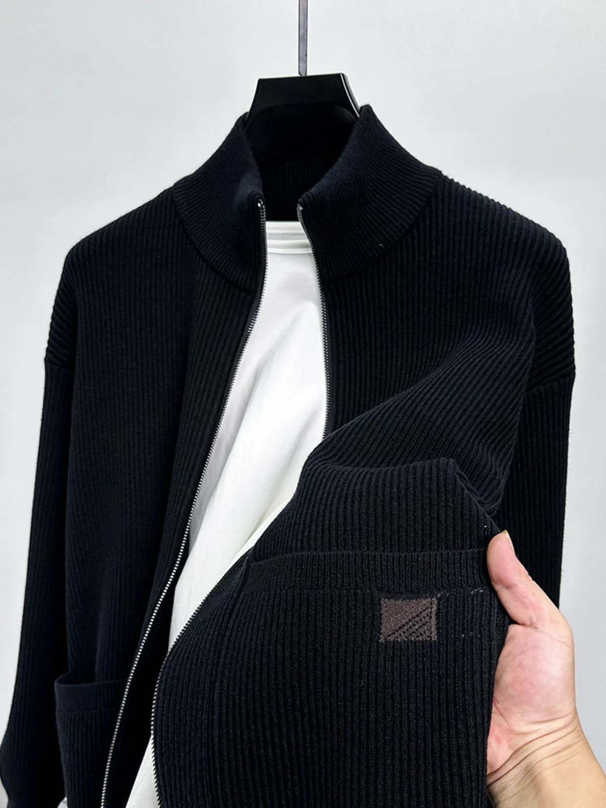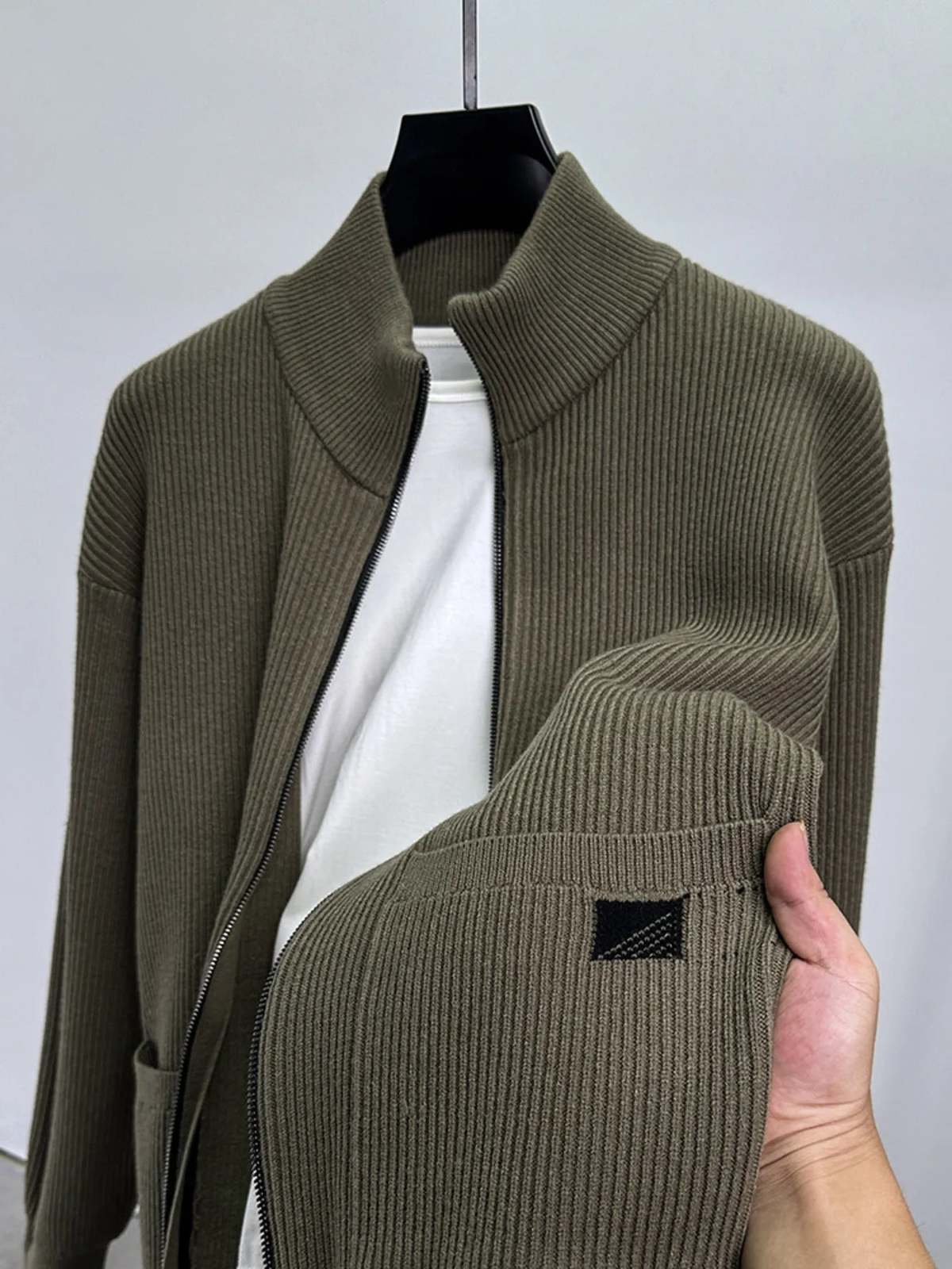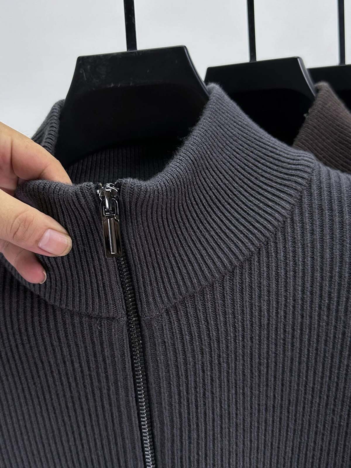 - Men's Plus Size Zip-Up Ribbed Knit Cardigan