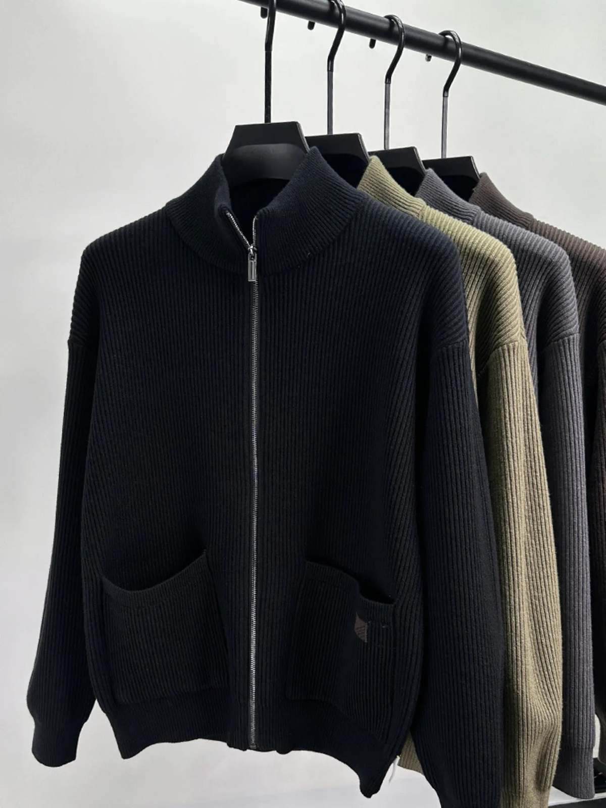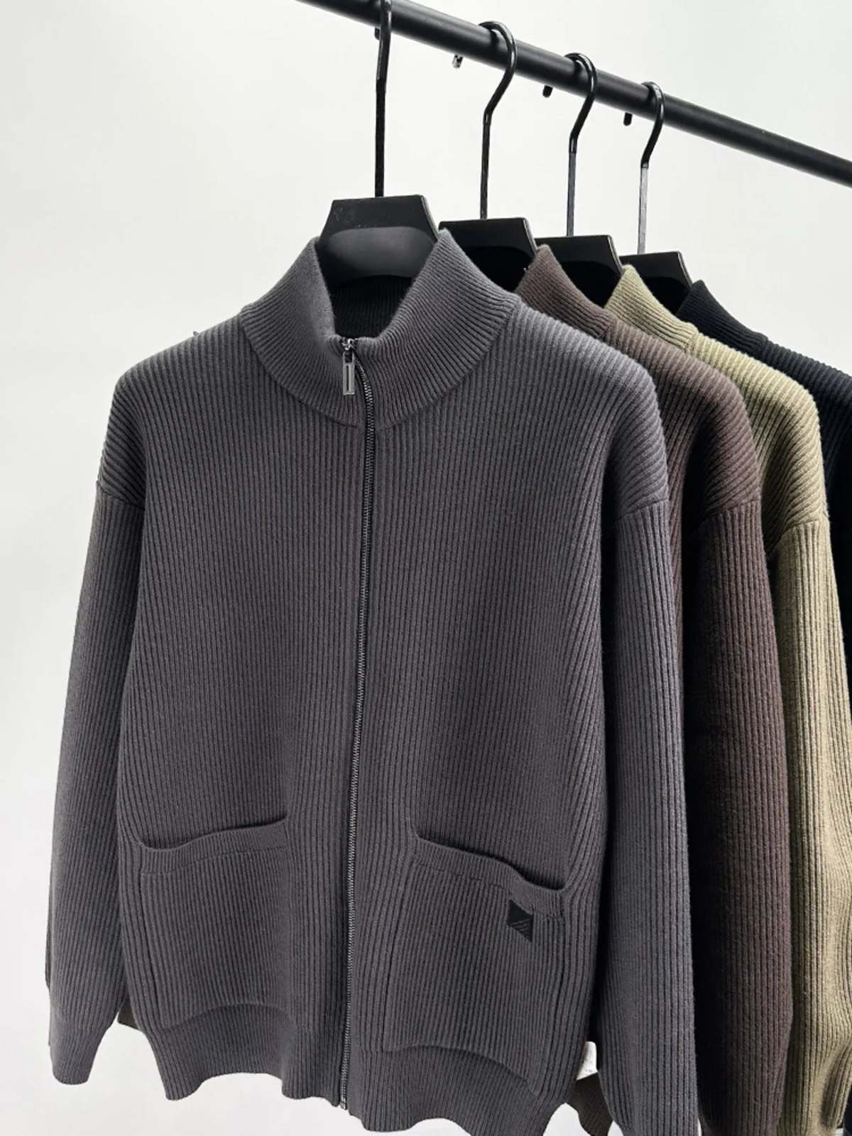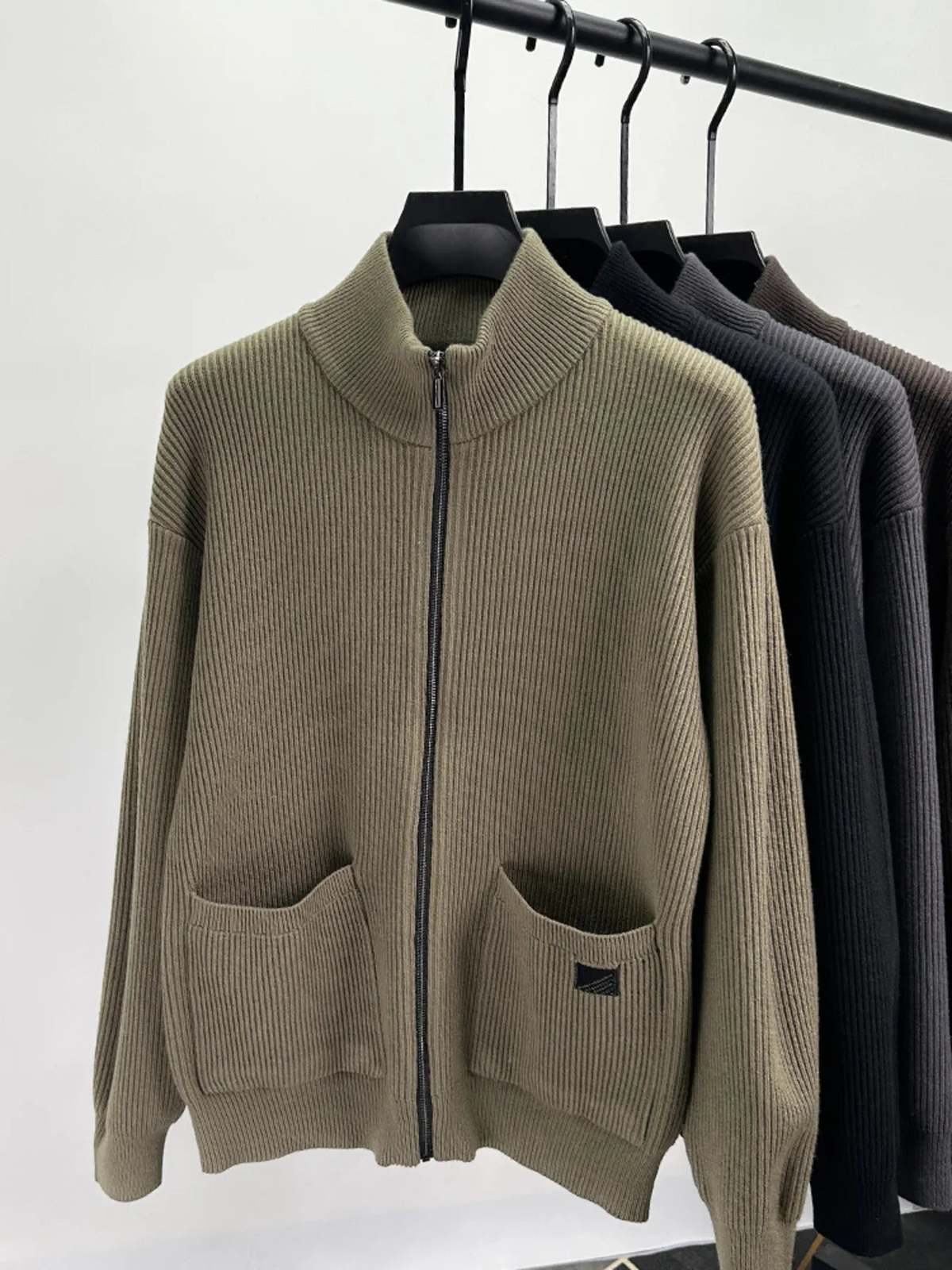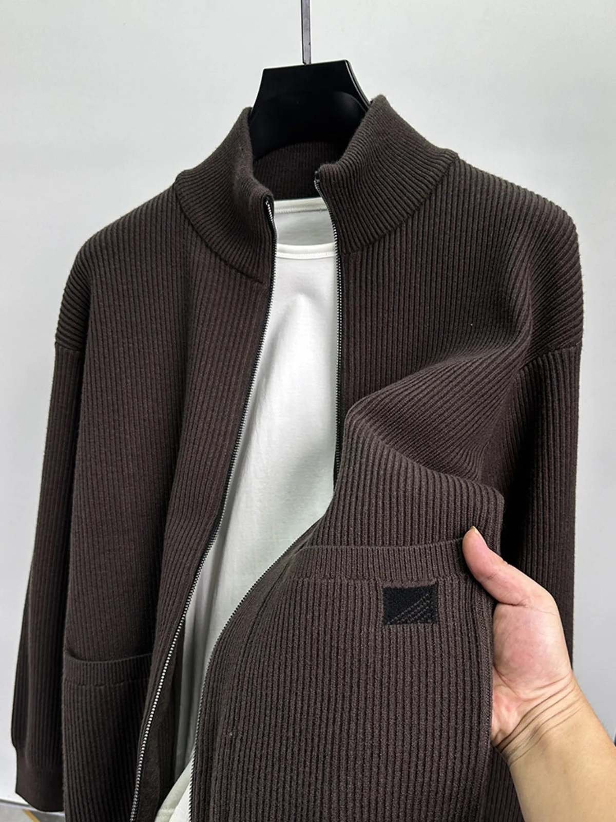 - Men's Plus Size Zip-Up Ribbed Knit Cardigan