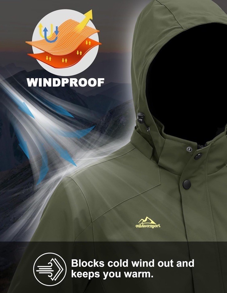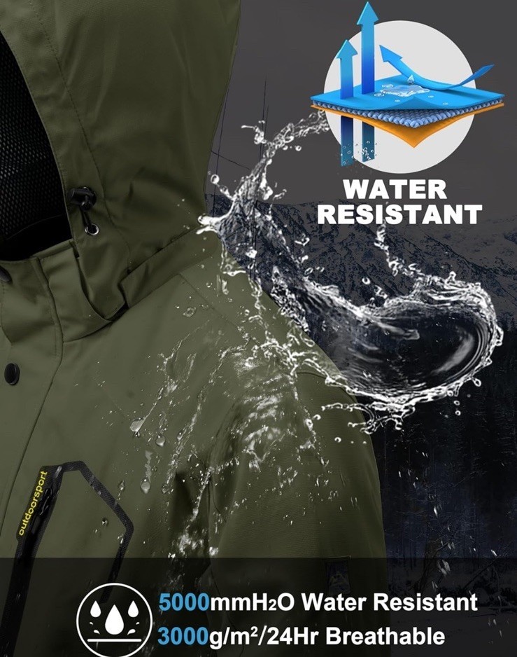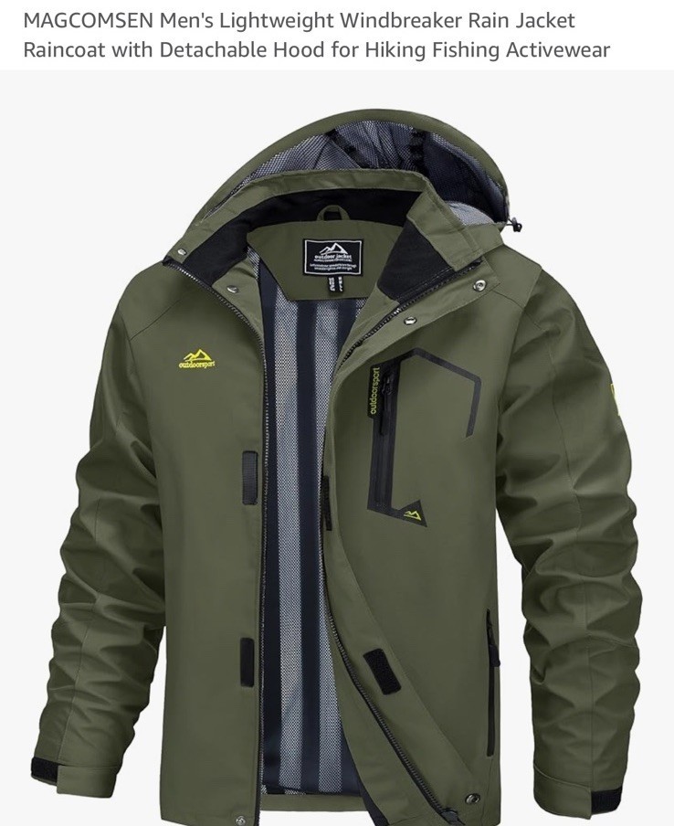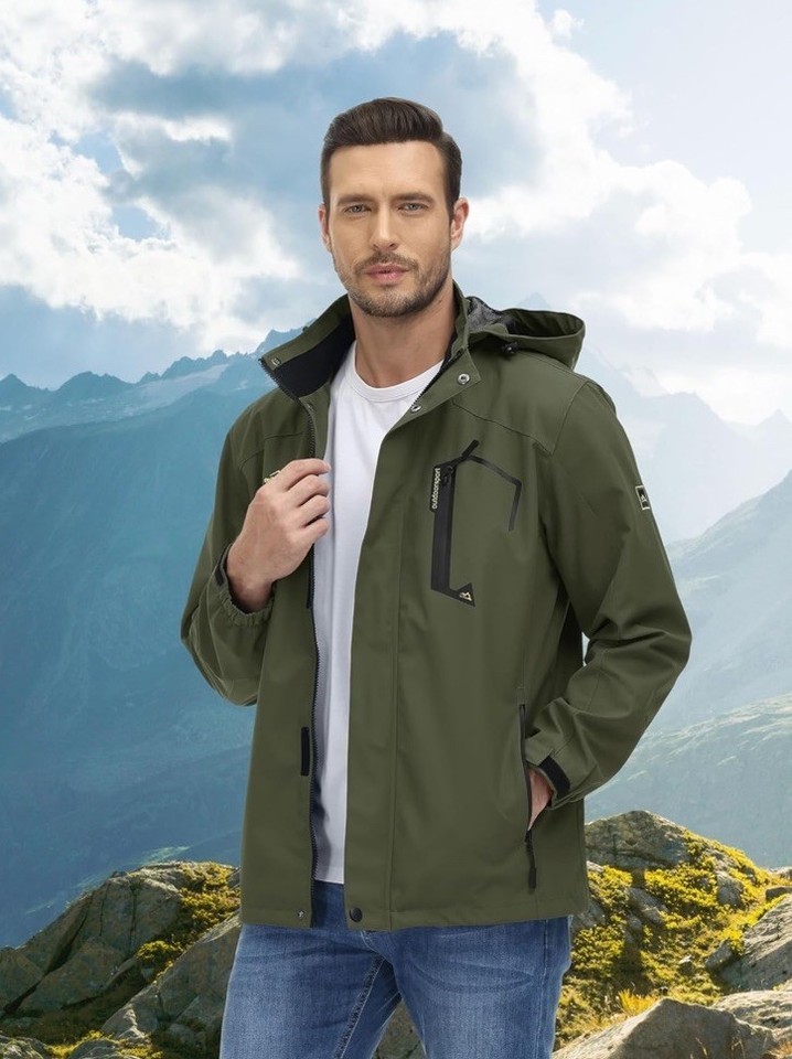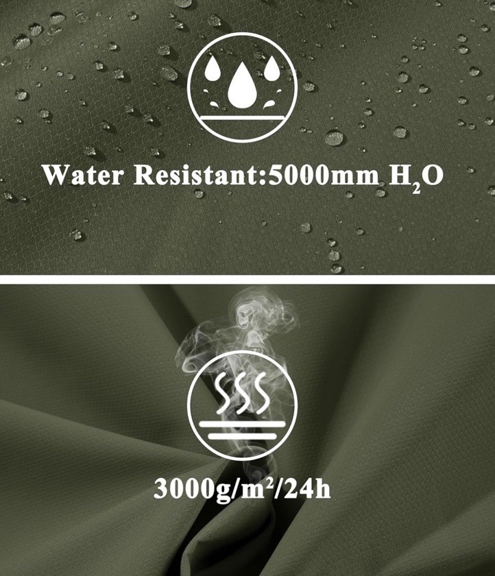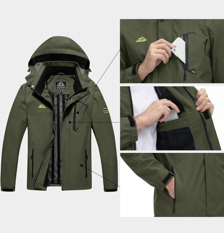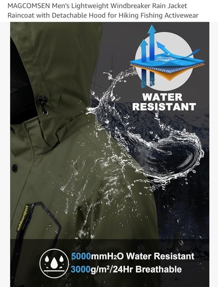 - Men's Raincoat Waterproof Hooded Windbreaker Lightweight Water Resistant Army