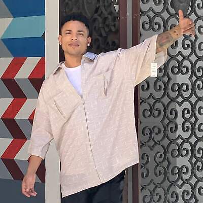 - Men’s Rocawear Khaki | White Zip S/S Button Down Shirts NWT