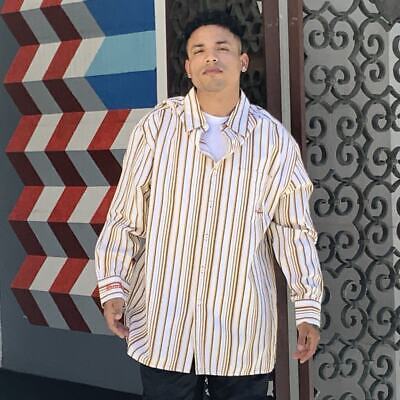 - Men’s Rocawear Striped White | Yellow | Navy L/S Button Down Shirts NWT