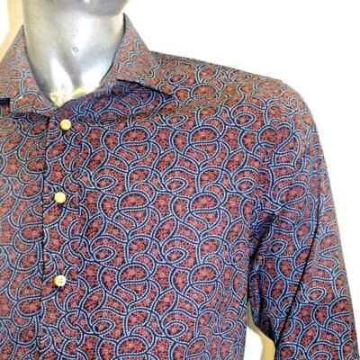 - Men's Rufus Navy | Brown | B.Blue Button Down Long Sleeve Shirt NWT