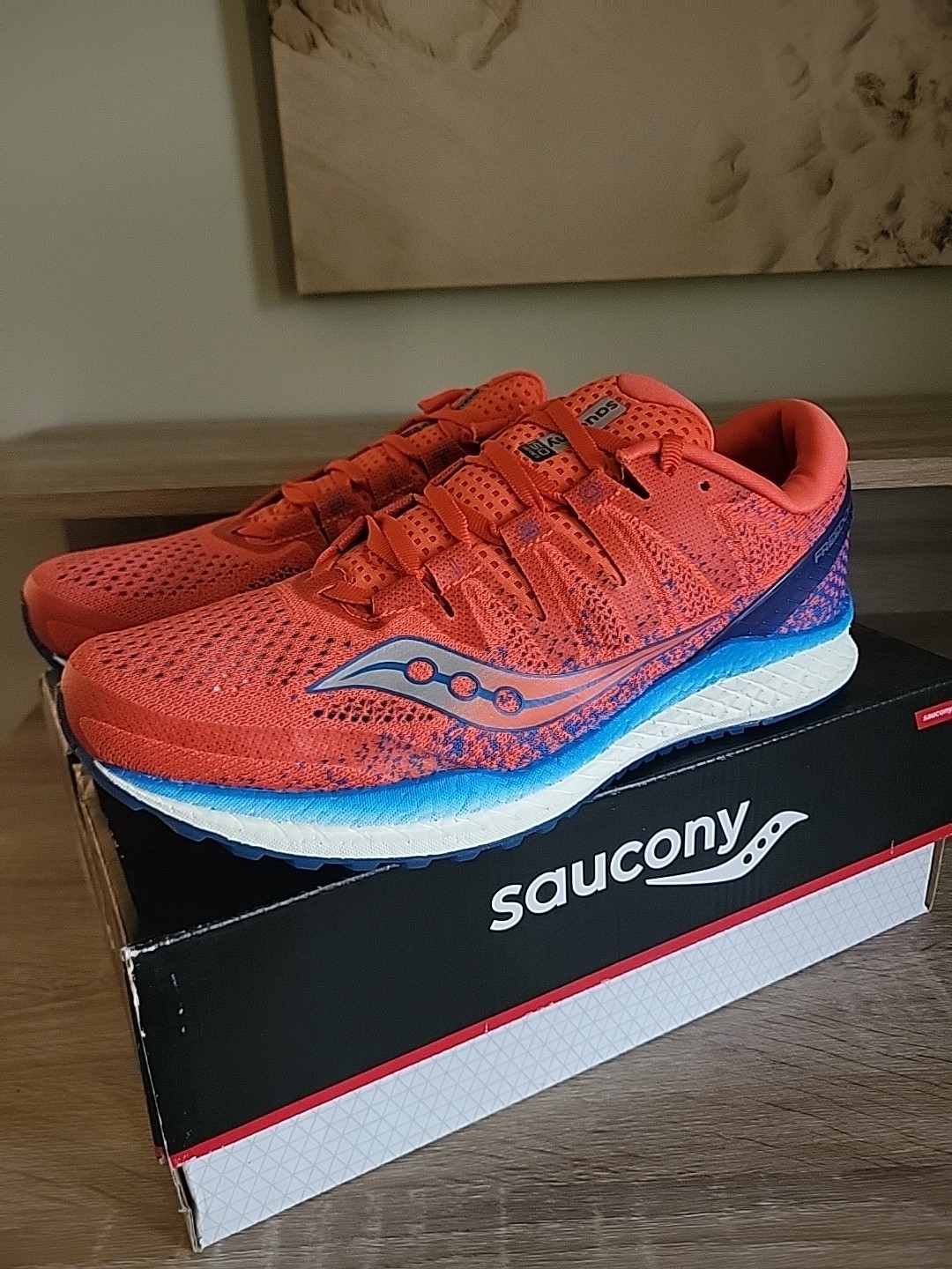 Brand New in the Box! Men's Saucony Freedom ISO 2 Running Shoes Orange Blue Size: 9 (US) UK: 8 EUR: 42.5 CM: 27 FEATURES: Guide and seek new adventures. The award winning guide null has been setting the pace for stability shoes for the past decade. Now the guide ISO raises the bar again with an innovative is of it design for a more refined fit. Medial support provides an effortless transition with every step. Saucony is among the most respected names in running shoes. We offer a wide range of running and walking shoes, each with the Saucony trademark fit, feel and performance. We've spent years studying the biomechanics of top athletes. Our goal? To develop creatively engineered systems that maximize your performance in your specific activity, allowing you to focus on the activity instead of the equipment. From our studies have come many innovative Saucony concepts. Advanced technologies-like Grid, the first sole-based stability and cushioning system--provide an advantage to athletes of all types. GREAT ITEM AT A GREAT PRICE!!