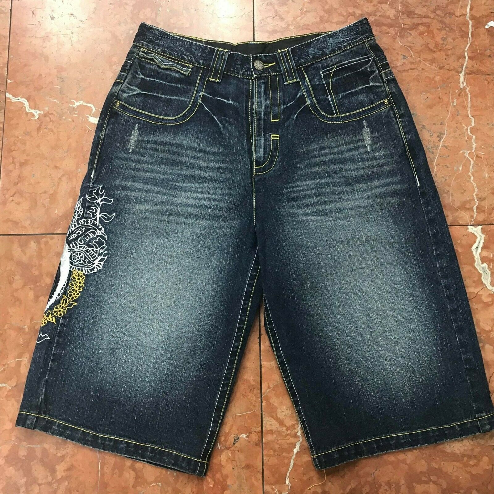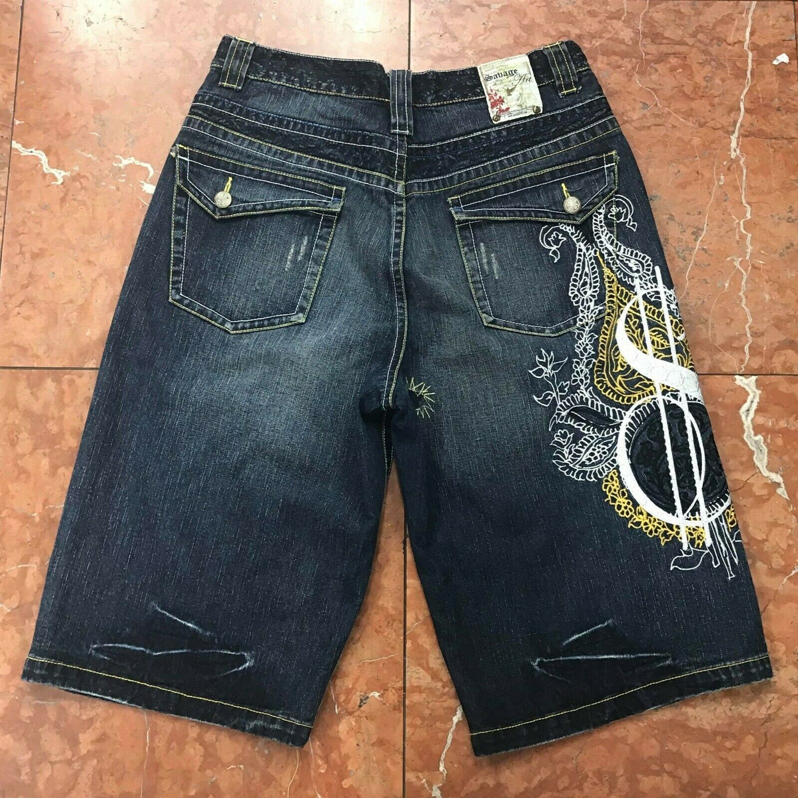 - Men's Savage Art Dark Blue Denim Short