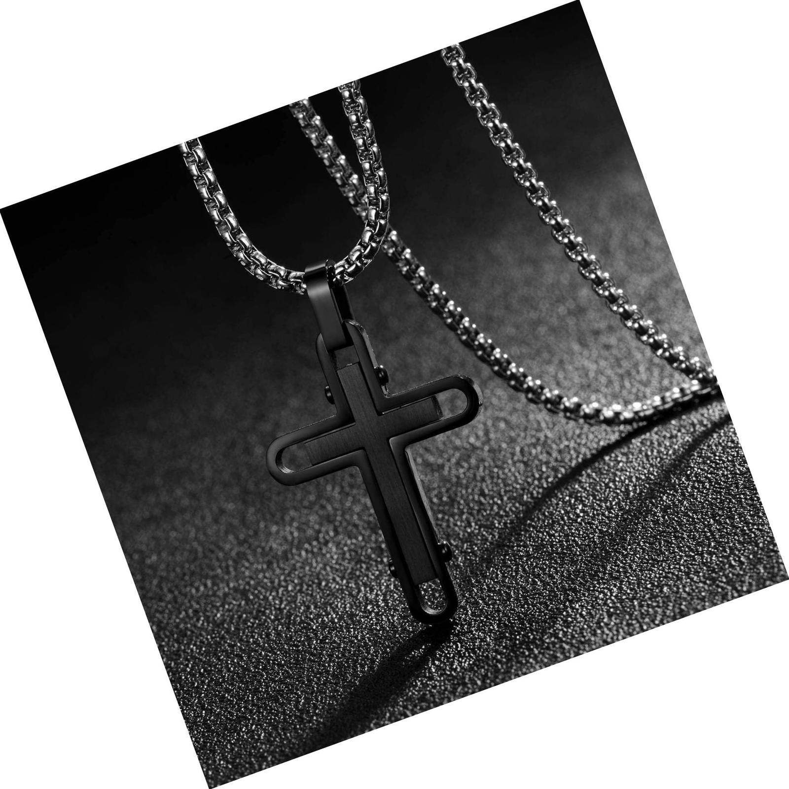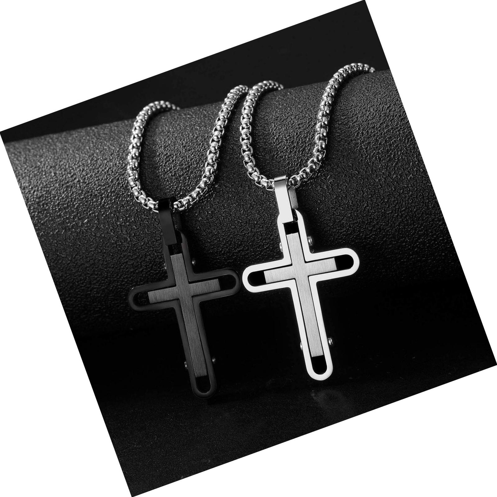 - Men's Stainless Steel Cross Necklace,Two-Tone -