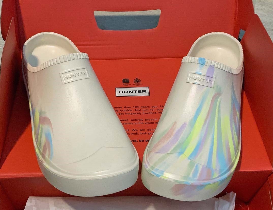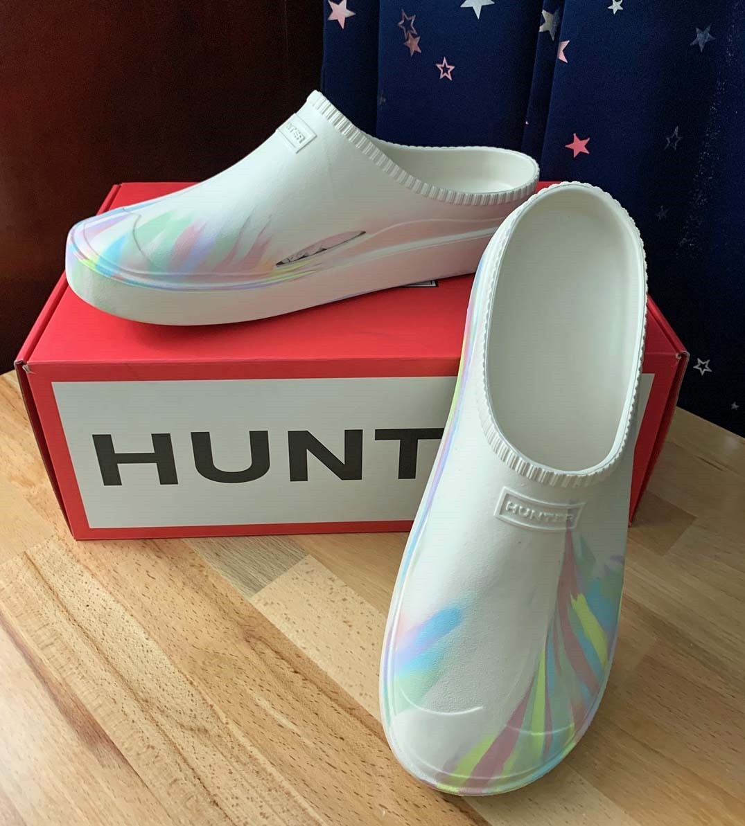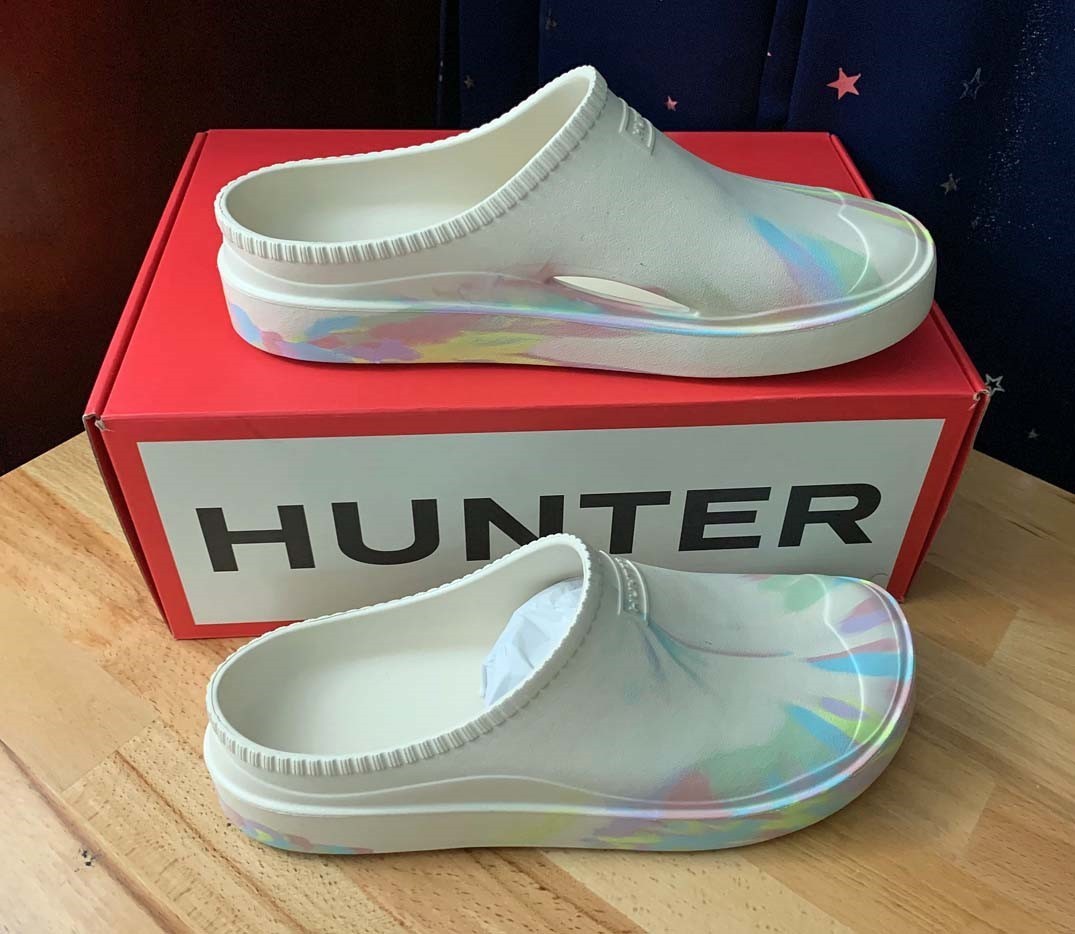 - Men's Unisex HUNTER IN/OUT Algae Foam Marble Clog Shaded White Sz 12 New in Box