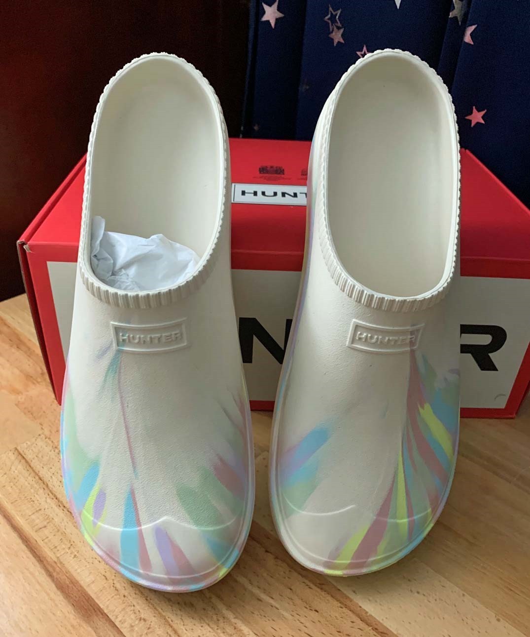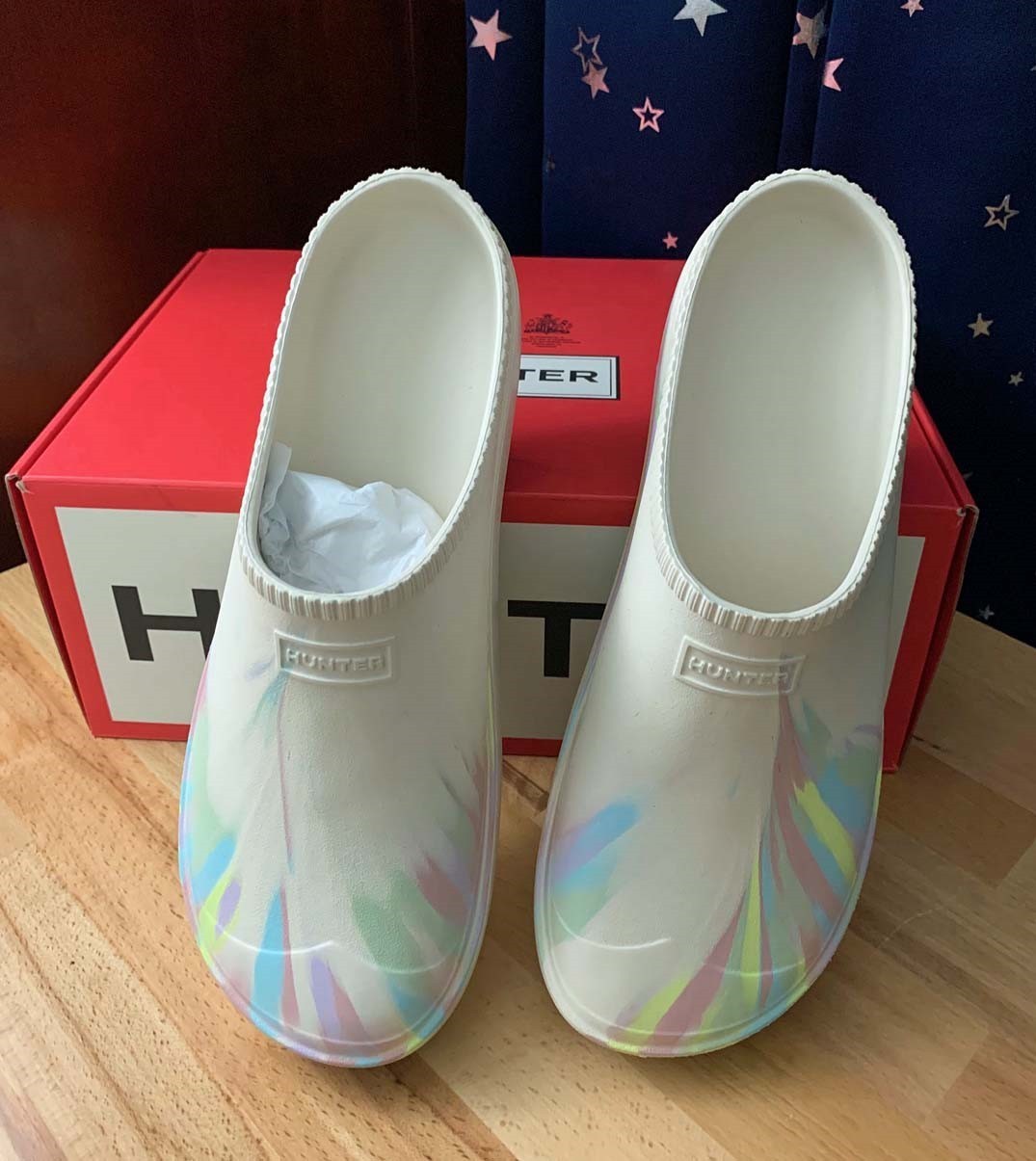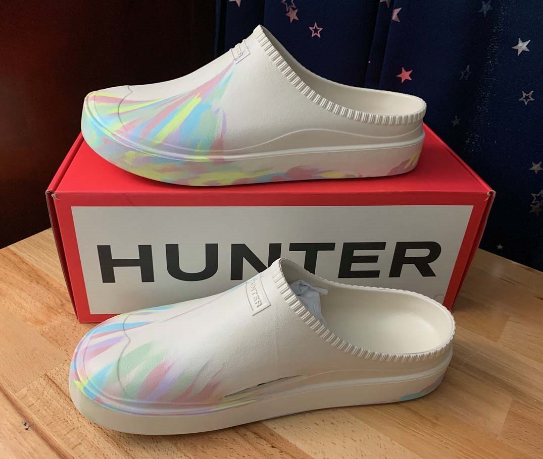 - Men's Unisex HUNTER IN/OUT Algae Foam Marble Clog Shaded White Sz 12 New in Box
