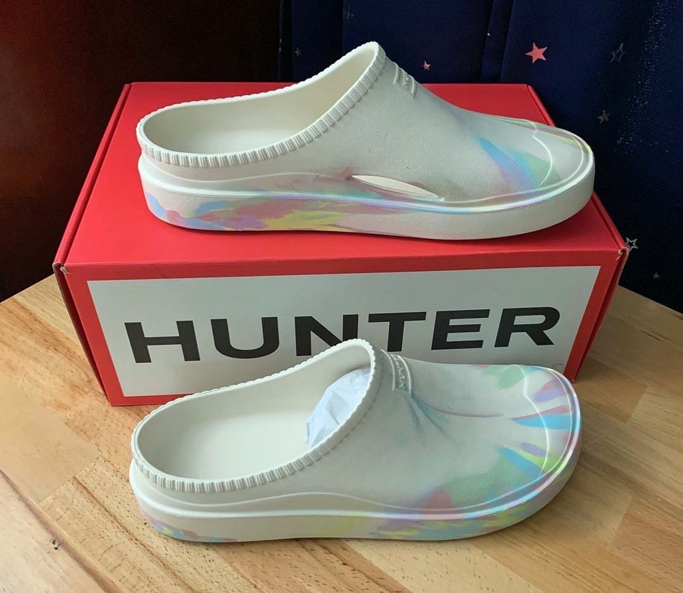 - Men's Unisex HUNTER IN/OUT Algae Foam Marble Clog Shaded White Sz 14 New in Box
