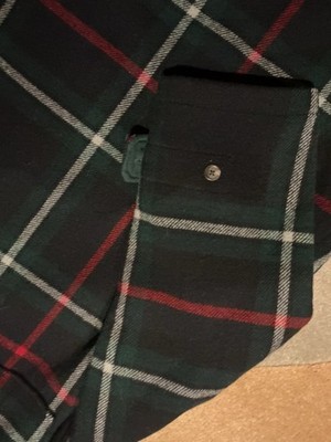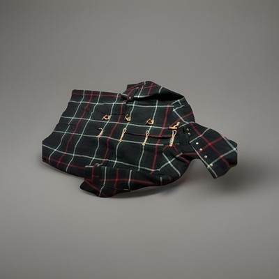 The product is a Men's Vintage Ralph Lauren plaid duffel coat in size L. This classic coat features a traditional plaid pattern and is designed for regular fit. Perfect for men's outerwear, this style combines timeless elegance with the renowned quality of the Ralph Lauren brand. This coat also has a larger fit. It?s meant to be a loose baggy coat. Please pay attention to the measurements. Ralph Lauren duffel coat measurements shoulder, to shoulder 21 inches sleeve length is 24 inches, armpit to armpit is 28 inches, length of coat is 48 inches.