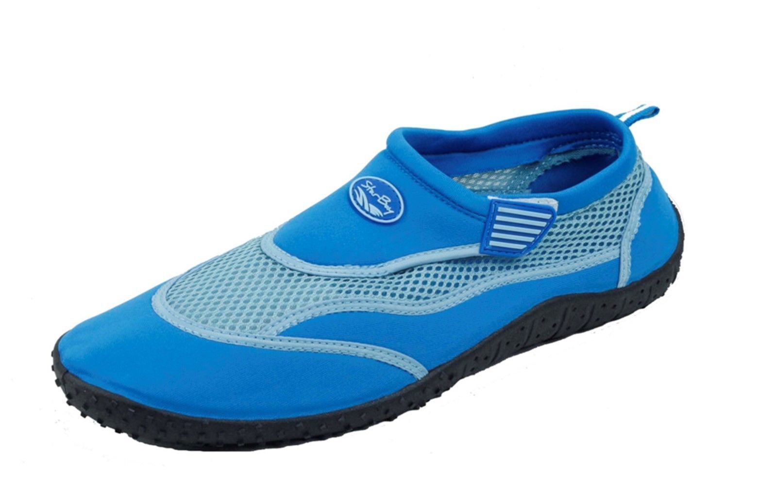 Brand New with Tag Men's Water Shoes Aqua Socks Pool Beach Surf Slip on Hook Loop Yoga Exercise COME IN SIZES 7-13 COLORS: Black, Blue, Grey These water \ aqua shoes are good ideal for the pool, beach or other occasion that you chose!