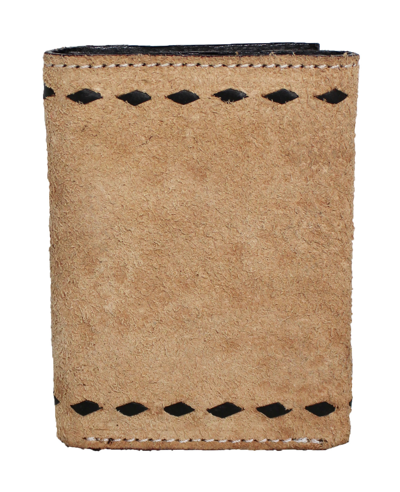 - Men's Western Tan Rough-Out Basket Tooled Leather Tri-Fold Wallet 18RSW125T
