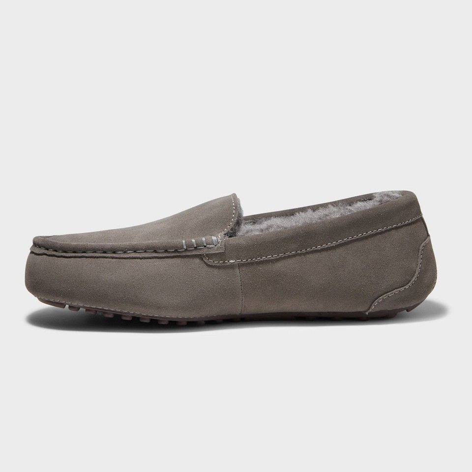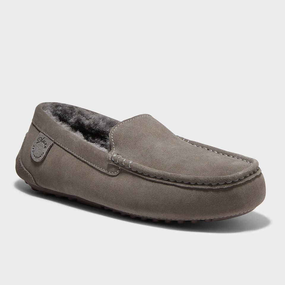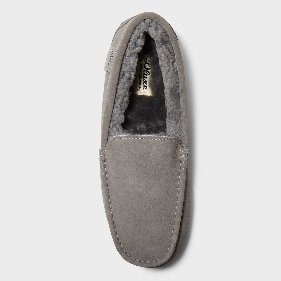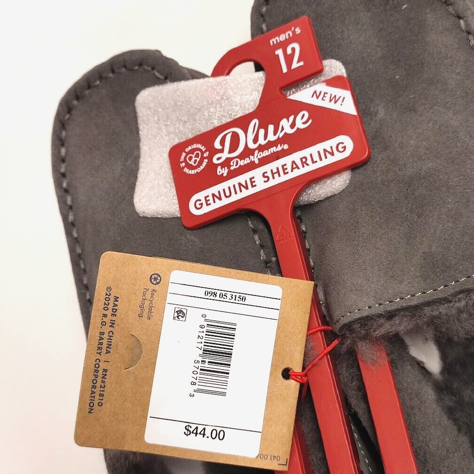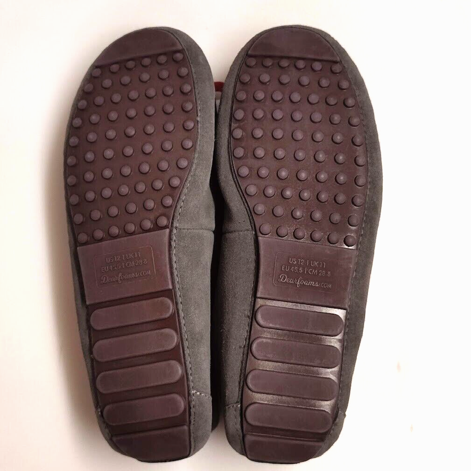 Men's dluxe by dearfoams Genuine Shearling Moccasins Slippers Size 12 Gray shoes