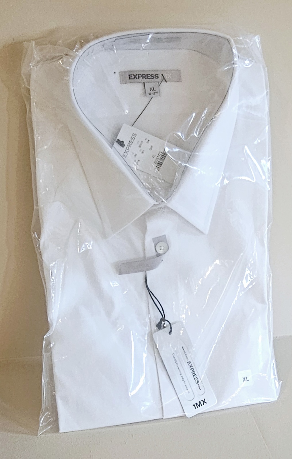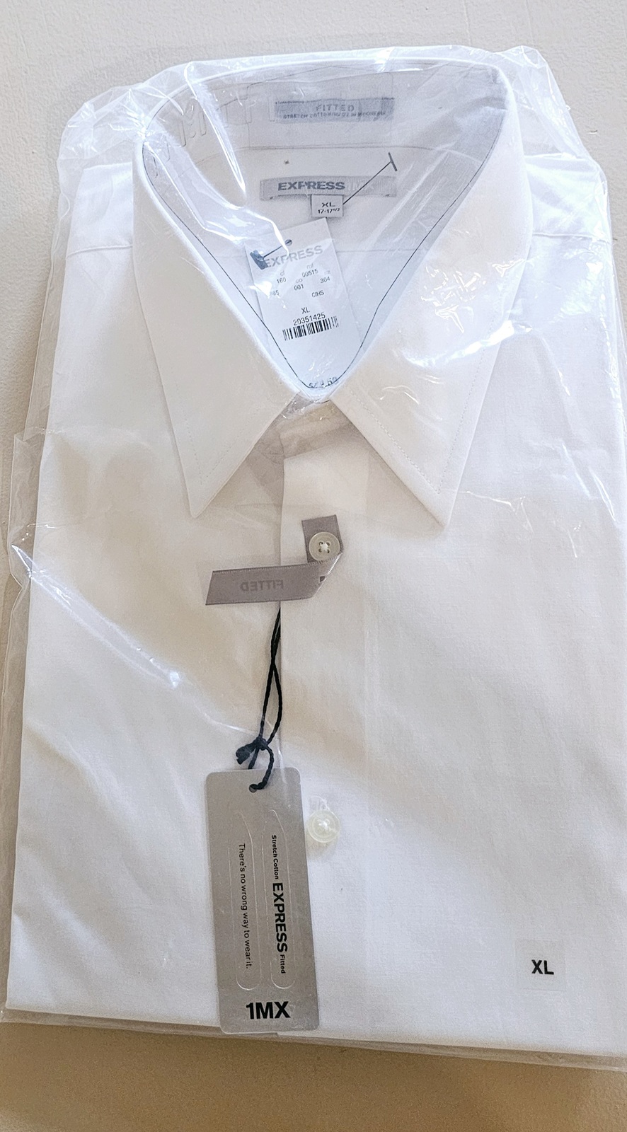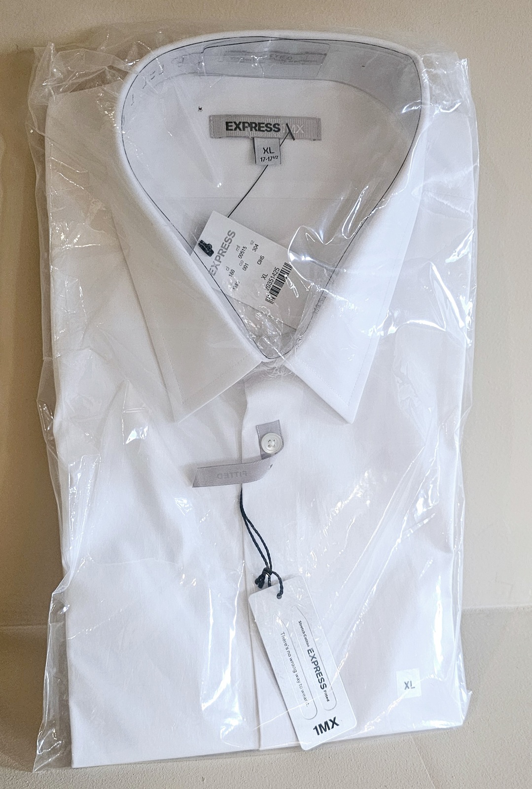 - Men's, white long-sleeved dress shirt from the brand EXPRESS