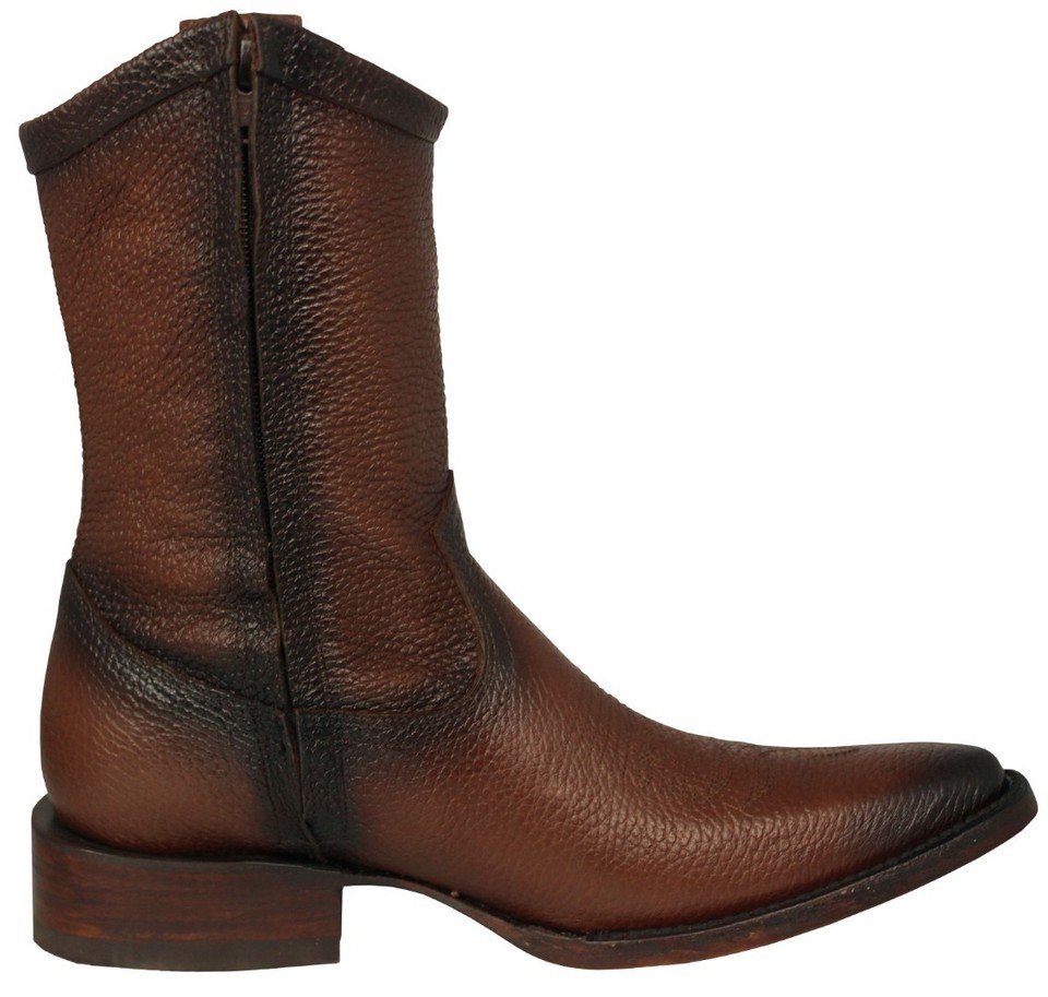 Mens Brown Western Cowboy Boots Zipper Casual Dress Leather J Toe Hombre Vaquero