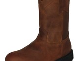 Mens Cognac Work Boots Leather Non Slip Oil Resistant Soles Pull On Soft Toe
