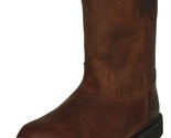 Mens Cognac Work Boots Leather Oil Slip Resistant Pull On Traction Sole Soft Toe