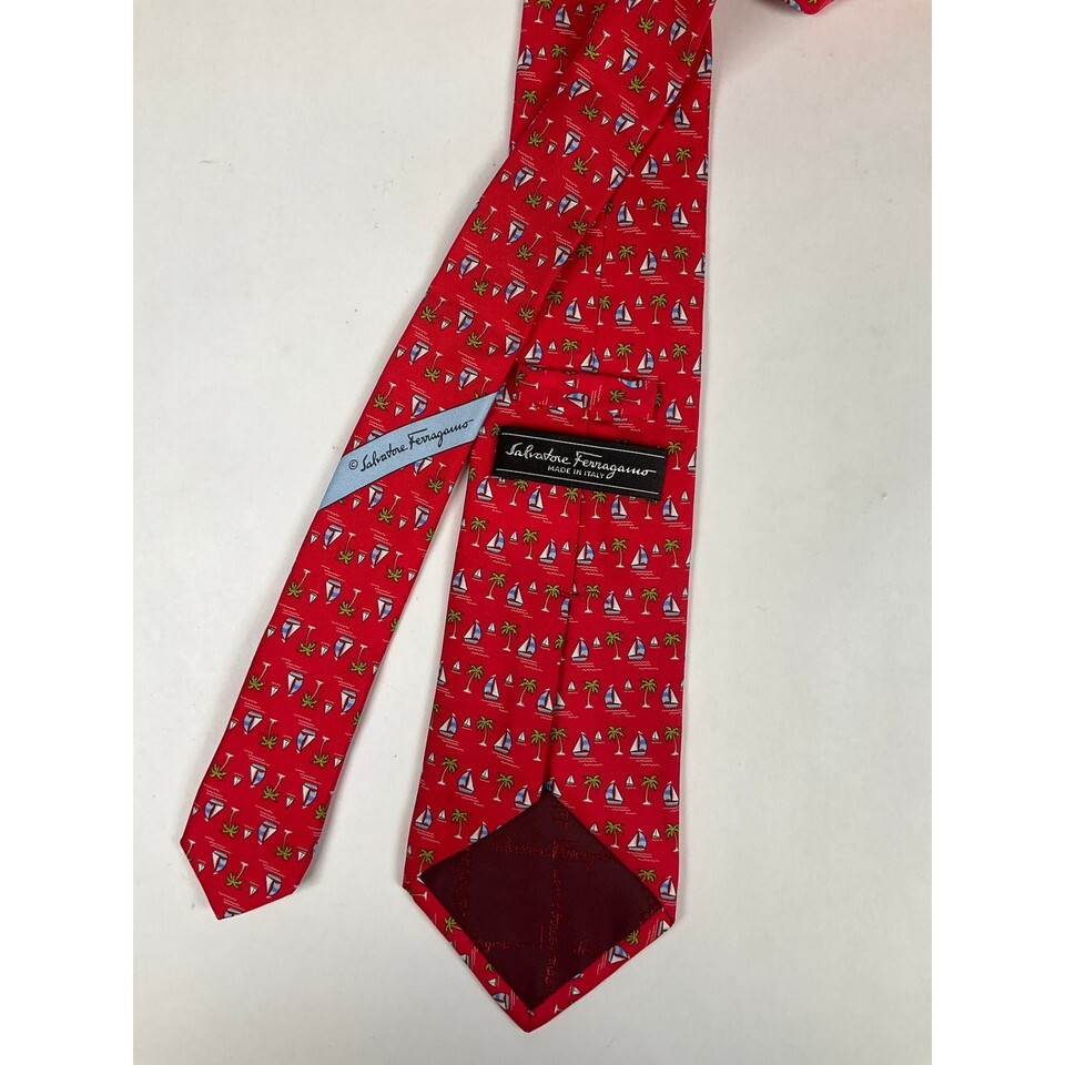 - Mens Salvatore Ferragamo Red Sailboat Tie | No Box