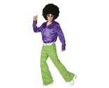 Super Funky Retro Costume. Late 60's or 70's. Shirt is a satiny material and looks like it would wrinkle easily. Could be used for a Hippie, Mack Daddy, Pimp. Gangsta, Solid Gold Disco King, Funky Fella, etc. DOES NOT INCLUDE WIG, GLASSES, JEWELRY, OR SHOES.