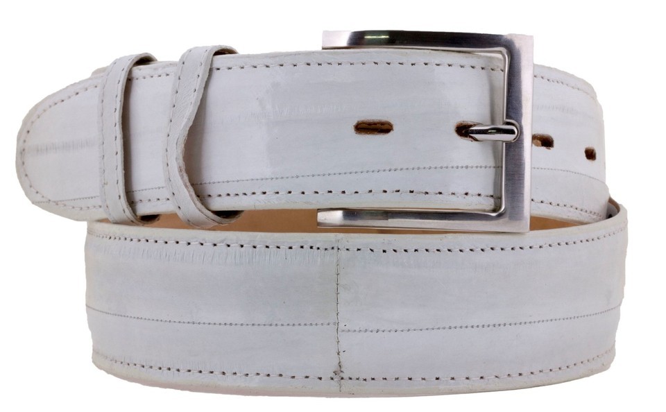 cowboypros men's women's kid's belts sandals sale Mens Western Dress Belt Off White Eel Skin Leather Removable Buckle Size 34-42 $59.99 Low Stock Available. Don't Miss Out!! Brand: El Presidente Material: 100% Genuine Leather Pattern: Real Eel Skin Width: 1.5 Inches Description: El Presidente's handmade genuine leather belt has become a true essential to every man's wardrobe over the years. This belt features a stylish pattern; a perfect match for any man seeking a luxurious style belt. This belt is handmade in Leon, Guanajuato, Mexico by some of the most experienced artisans in the country. You can pair this belt with fine leather Oxfords Shoes, Chelsea Boots, and Western Cowboy Boots. Purchase a durable and versatile belt. Our belts features a removable buckle for your own customization. Simply remove the 2 screws, add your buckle and then fasten the screws. Color accuracy of item will vary depending on monitor and device. We go to great lengths to assure color accuracy.