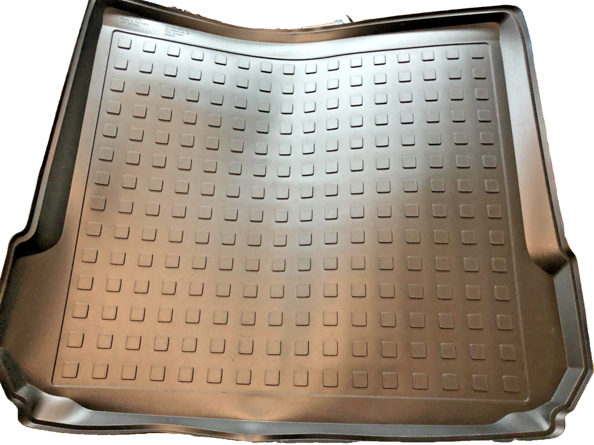 Jamais utilise a notre connaissance. Recu d'un concessionnaire Mercedes. Va dans le coffre pour le garder propre. Quelques marques notamment sur le fond dues au deplacement/stockage. Facilement retire et nettoye.