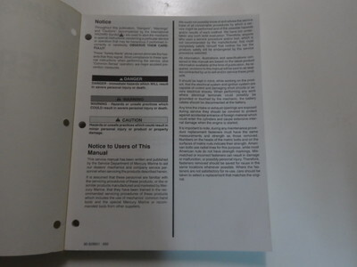 Loads of information and illustrations, covers a lot, no missing pages, step by step Instructions, exploded illustrations and/or diagrams, great manual to have when you own Mercury Mariner. This manual will save you money in Repairs/Service.