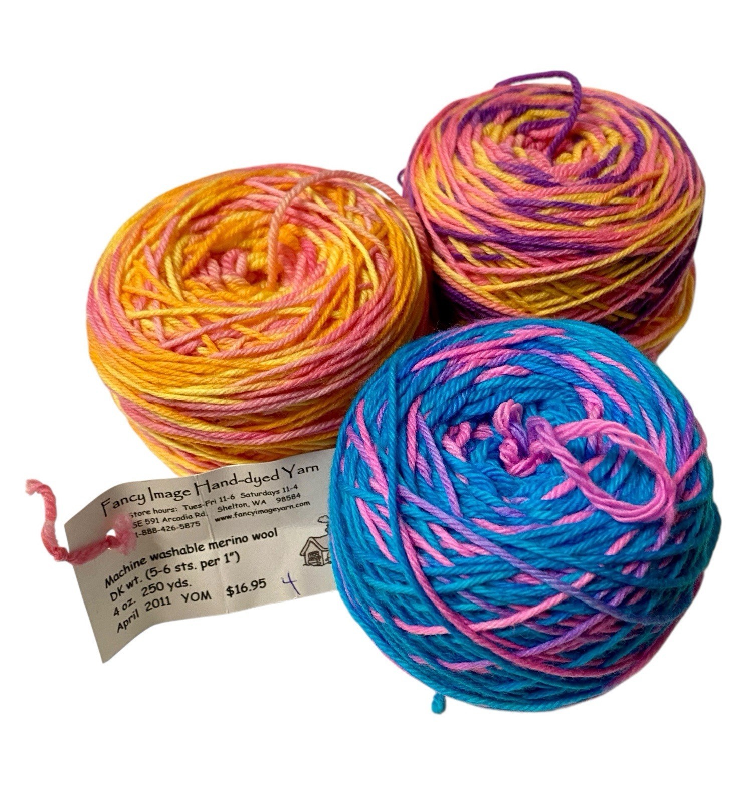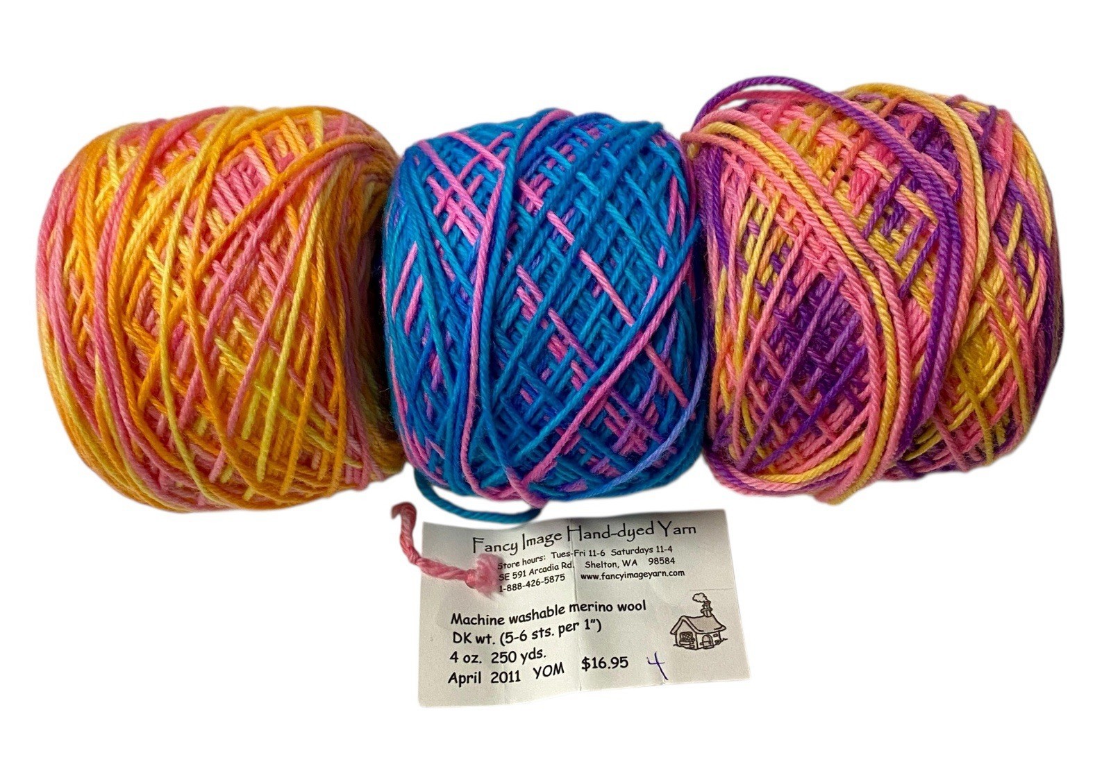 - Merino Merino Wool Yarn Lot of 3 Cakes Hand Dyed Washable DK Colorful 4 Oz Each