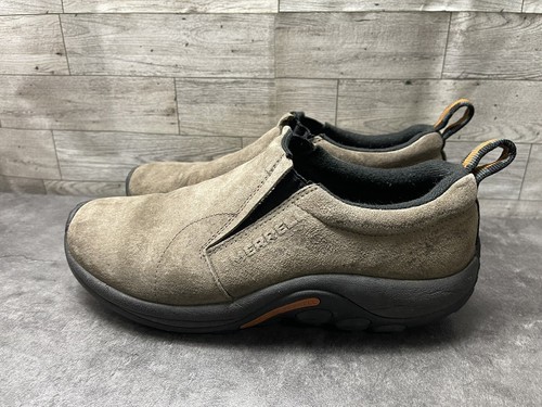 - Merrell Loafers Women 9M Jungle Moc Shoes Gray Suede Slip on Casual comfort