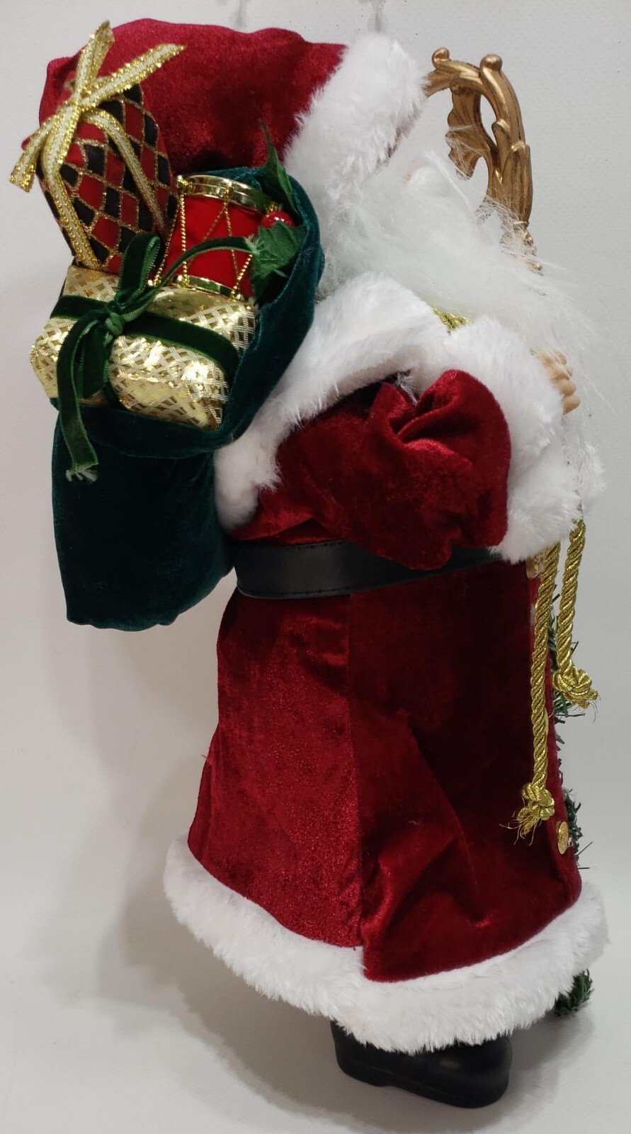 Merry Brite 18" Santa Figurine w/ Sack Staff Country Farmhouse Holiday Decor 18 in (45.7cm) Hard plastic with beautiful soft fabric clothing Farmhouse, Rustic, Country