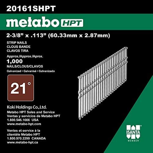 - Metabo HPT 2-3/8 Inch 21 Degree Pneumatic Nails | 1,000 Count | 20161SHPT