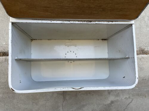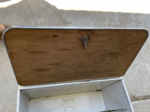 Metal Bread Box by BEAUTY BOX for SEARS Late 70s Vintage chrome and white good used condition please see pictures