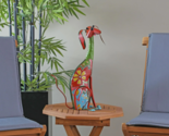 An outdoor decor accent should be one that can easily be adorned in indoor spaces as well, this dog sculpture is crafted with keeping this idea in mind. This dog sculpture is made of iron and features multicolor on a red base. Comes in an eclectic matte finish, featuring a vivid palette of red, blue, yellow, green, pink and black. This flaunts a tinge of rustic texture to make this sculpture more appealing as a garden accent. If not in garden you can also place this on table top in your living room, bedroom, and entryways.