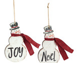 Festive Snowman Design Features cheerful snowmen with "Joy" and "Noel" sentiments, bringing warmth and charm to your holiday decor. Durable Metal Construction Made from high-quality iron metal, ensuring longevity and repeated seasonal use. Easy to Hang Display Includes a convenient string for effortless hanging on Christmas trees, wreaths, or garlands. Suitable for indoor use only