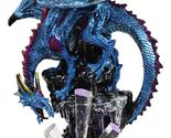 Metallic Blue Dragon with Magenta Spikes Guarding Bottle Ice Crystals Figurine