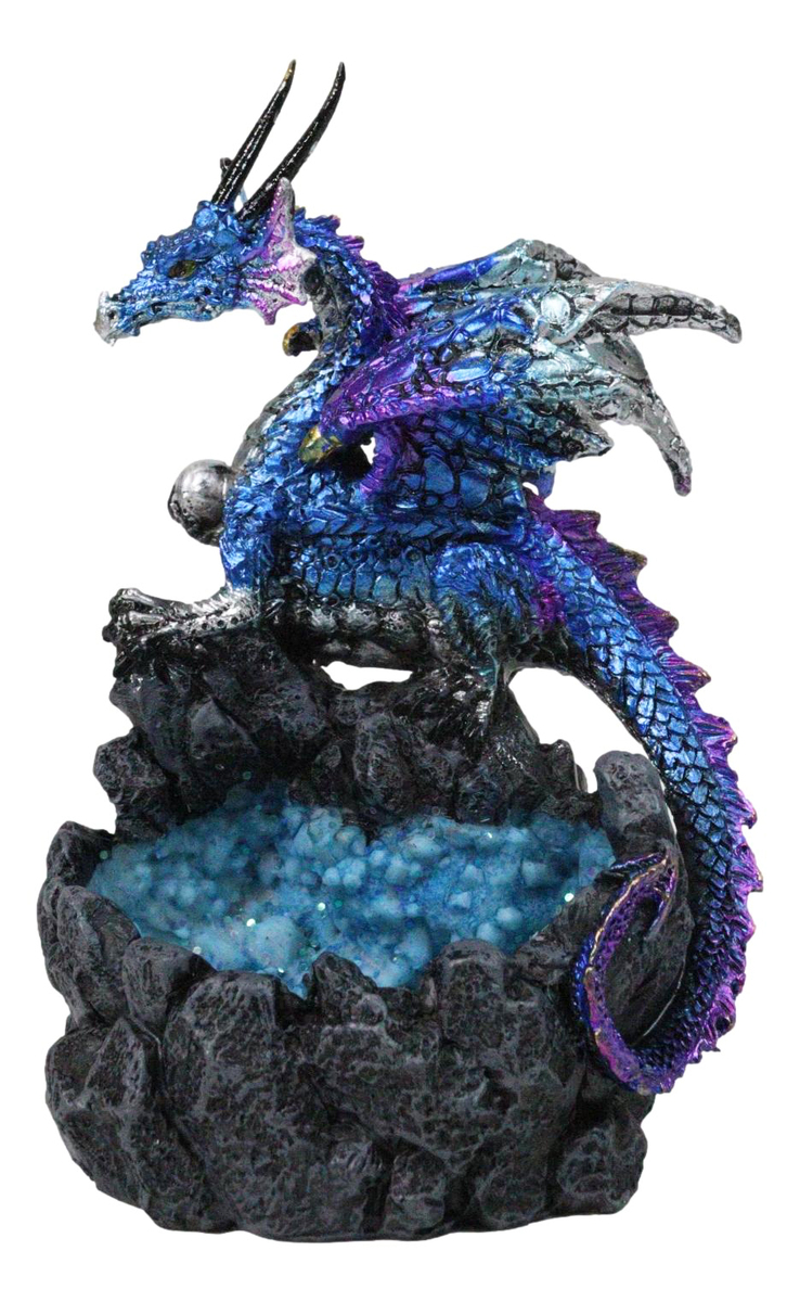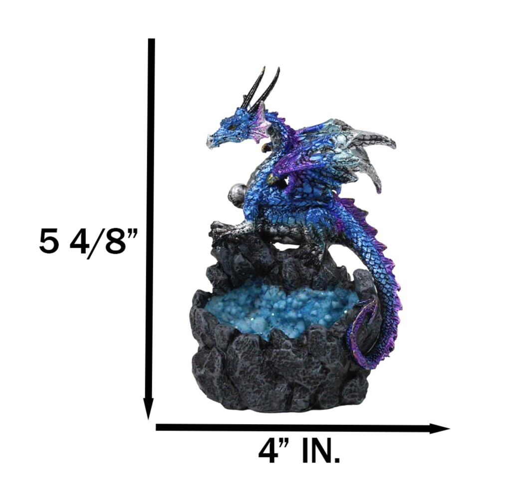 ? Unleash mythical power in your decor with the Ancient Blue Dragon Guarding Quartz Crystal Quarry Figurine. This stunning piece features a majestic dragon in shimmering blue and purple tones, fiercely protecting a quarry of sparkling quartz crystals. Rich in detail and fantasy allure, it captures the spirit of ancient legends and magical realms. Perfect for dragon collectors, fantasy enthusiasts, or as a bold centerpiece that adds mystical energy and brilliance to any space.