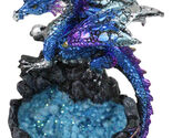 Metallic Blue Dragon with Purple Spikes Guarding Quartz Crystal Quarry Figurine
