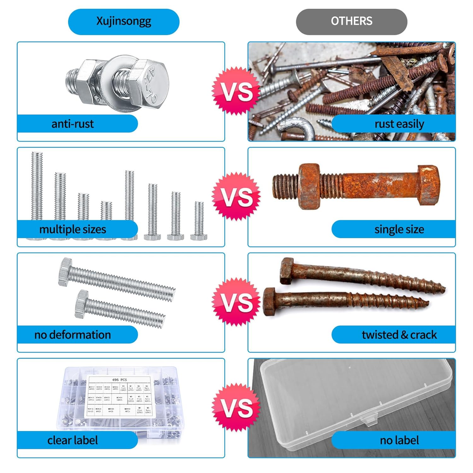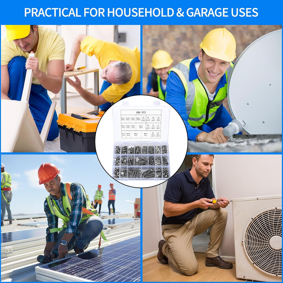 - Metric Hex Bolt, Nut & Washer Assortment Kit - 496 Pcs Stainless Steel Set