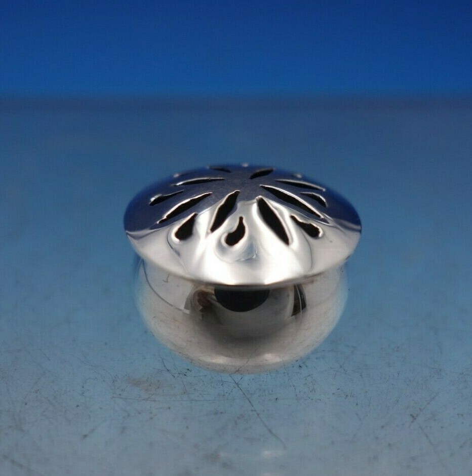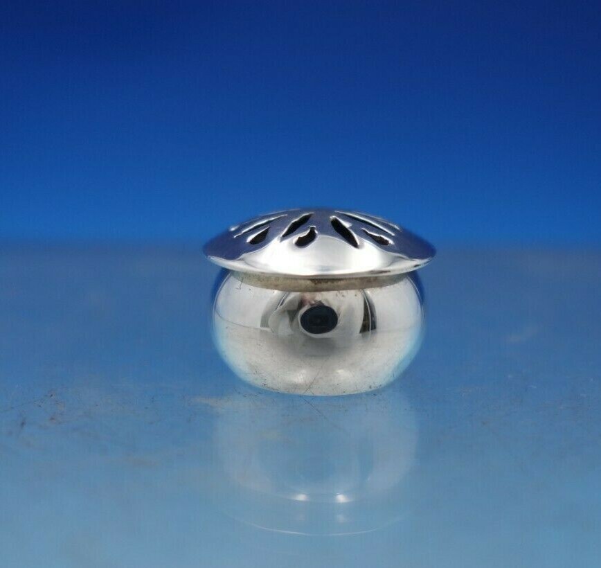 Remarkable Mexican .925 silver pepper shaker (maker unknown). This shaker measures 5/8" tall x 3/4" and weighs .2 troy ounces. It is not monogrammed and is in good vintage condition. Fantastic!