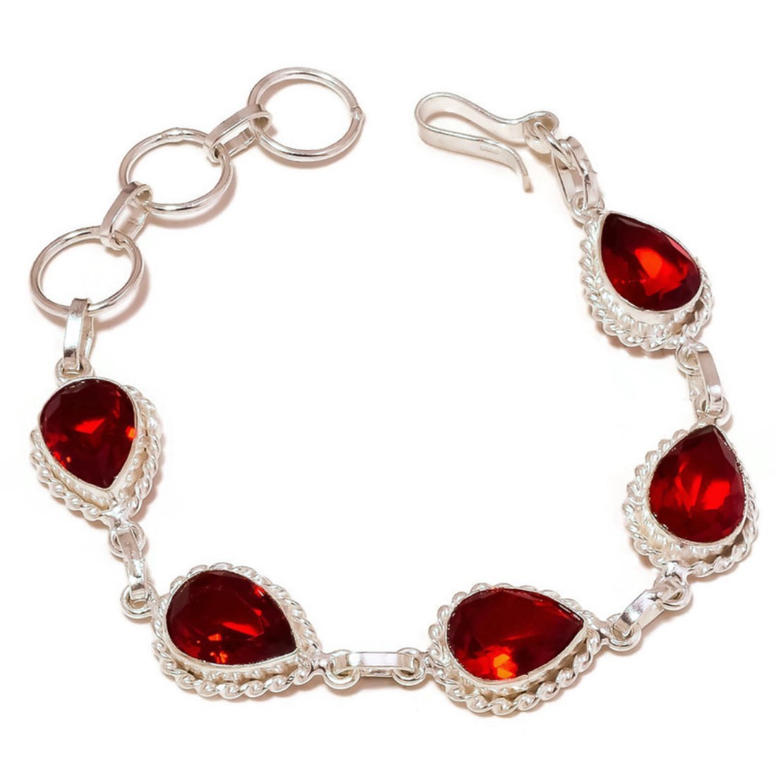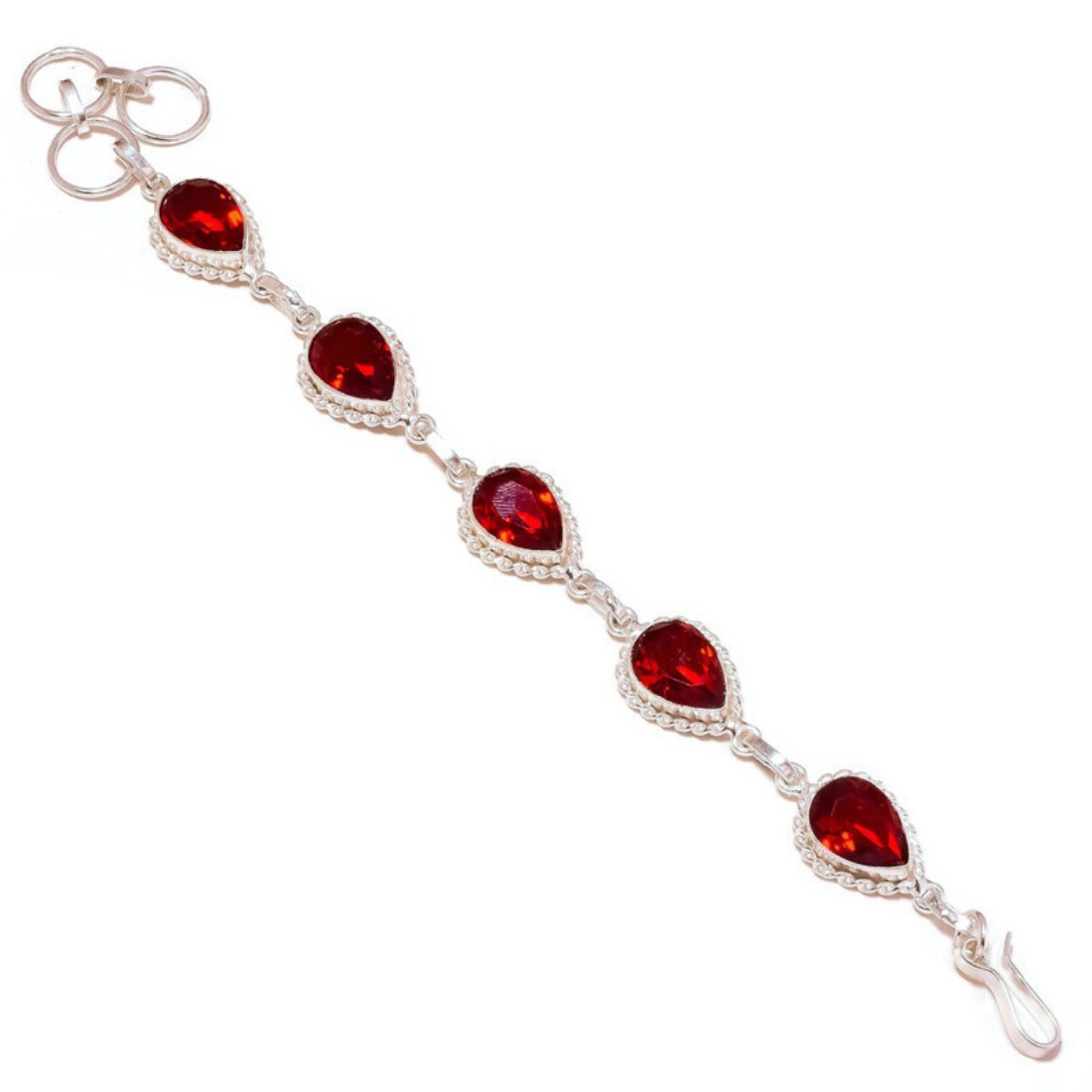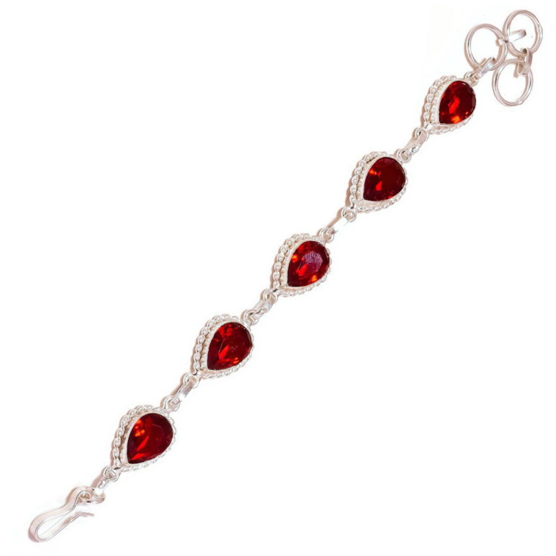 - Mexican Red Apatite Pear Gemstone 925 Silver Handmade Rope Bezel Toggle Bracelet