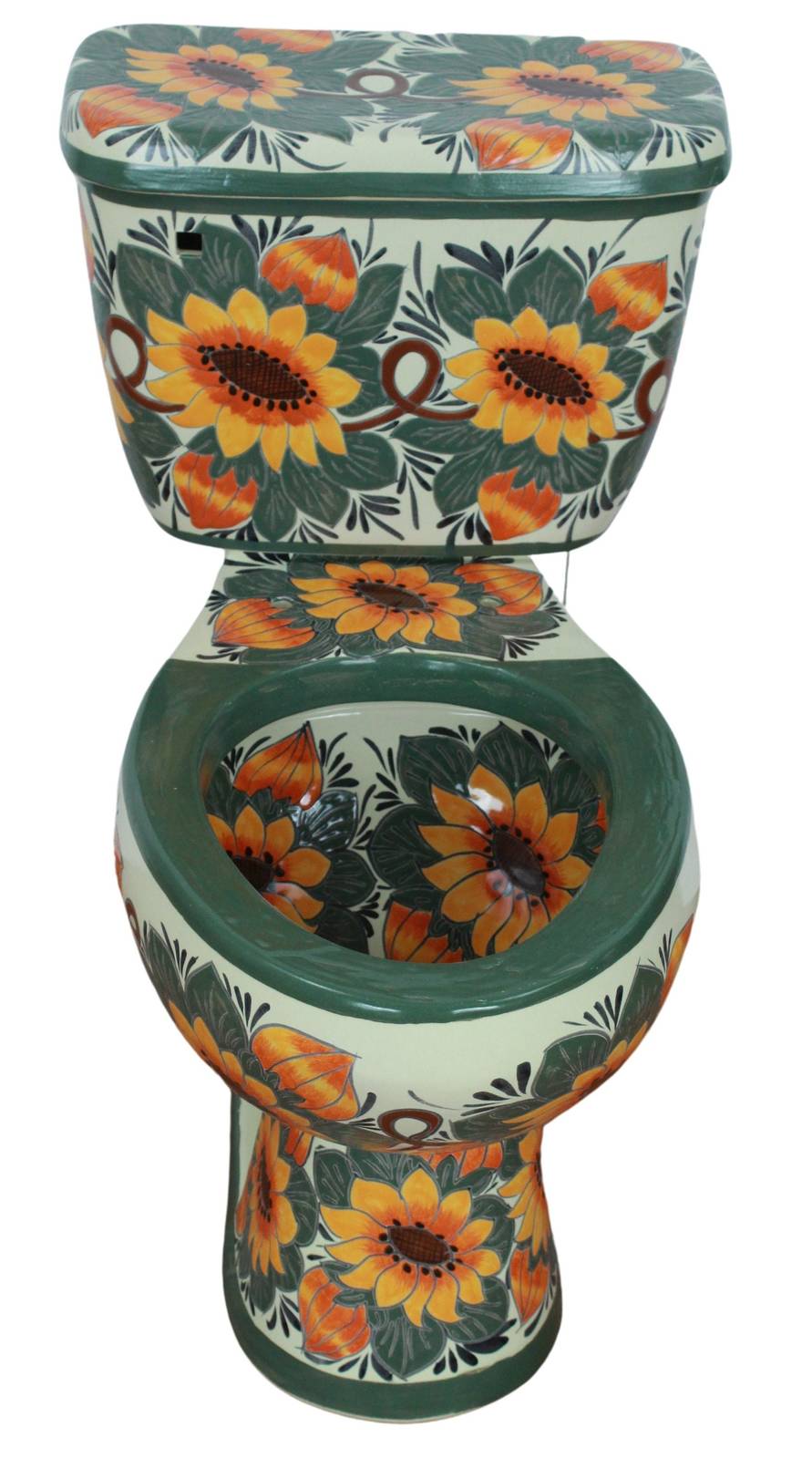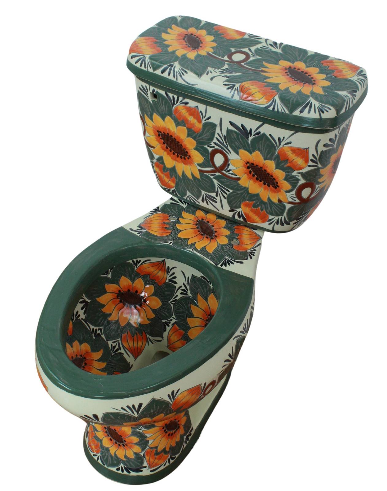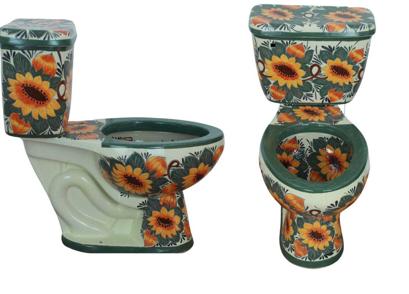 Own a unique Hand Painted Mexican Talavera Toilet made by the Artisan's dedicated work and passion. Forget about the boring plain colored toilets and bring a lively piece of Art to your bathroom that will amaze your guest.
