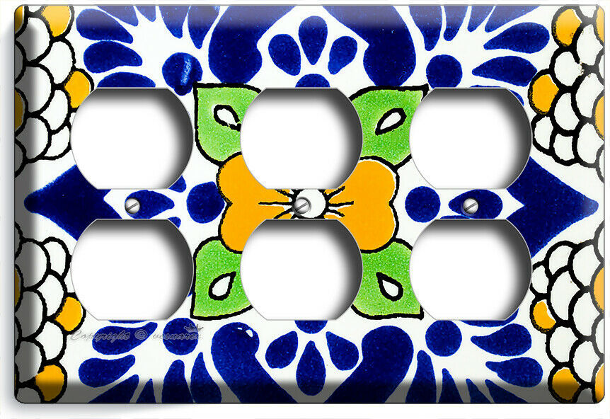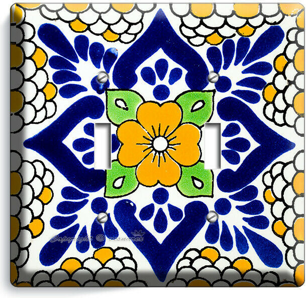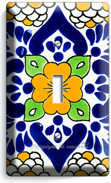 - MEXICAN YELLOW TALAVERA TILE LOOK LIGHT SWITCH OUTLET PLATES KITCHEN FOLK DECOR