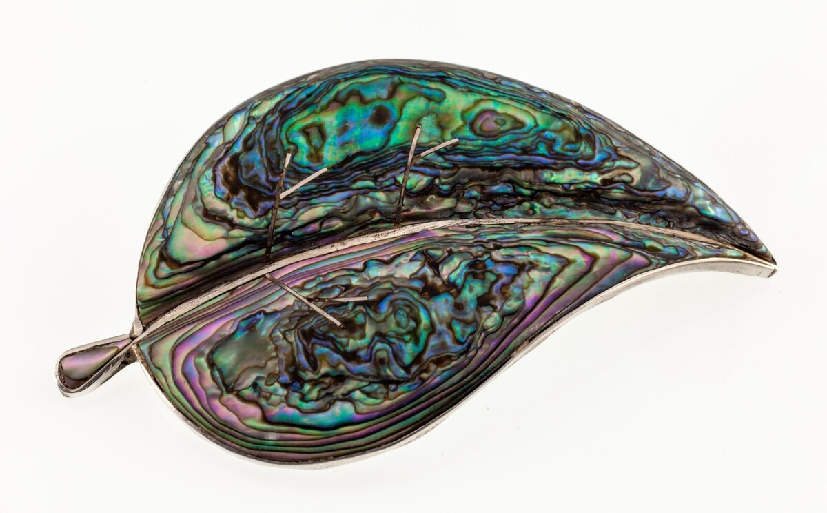 - Mexico Argent Sterling Abalone Incrustation Broche Superbe
