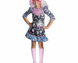 Dress your little lady up in the boho-chic style of Viperine Gorgon in this fun and funky Monster High Halloween costume. The pretty polyester dress is a freaky fabulous mix of patterns and colors. Shoes and wig not included. Heart-shaped glasses make this girls' Halloween costume just a little rosier!Includes:? Dress? Glasses Imported.
