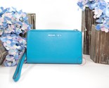 Michael Kors Santorini Blue Leather Adele Double Zip Phone Wristlet NWT DEFECT!!