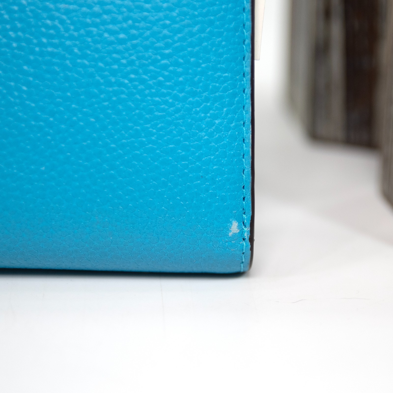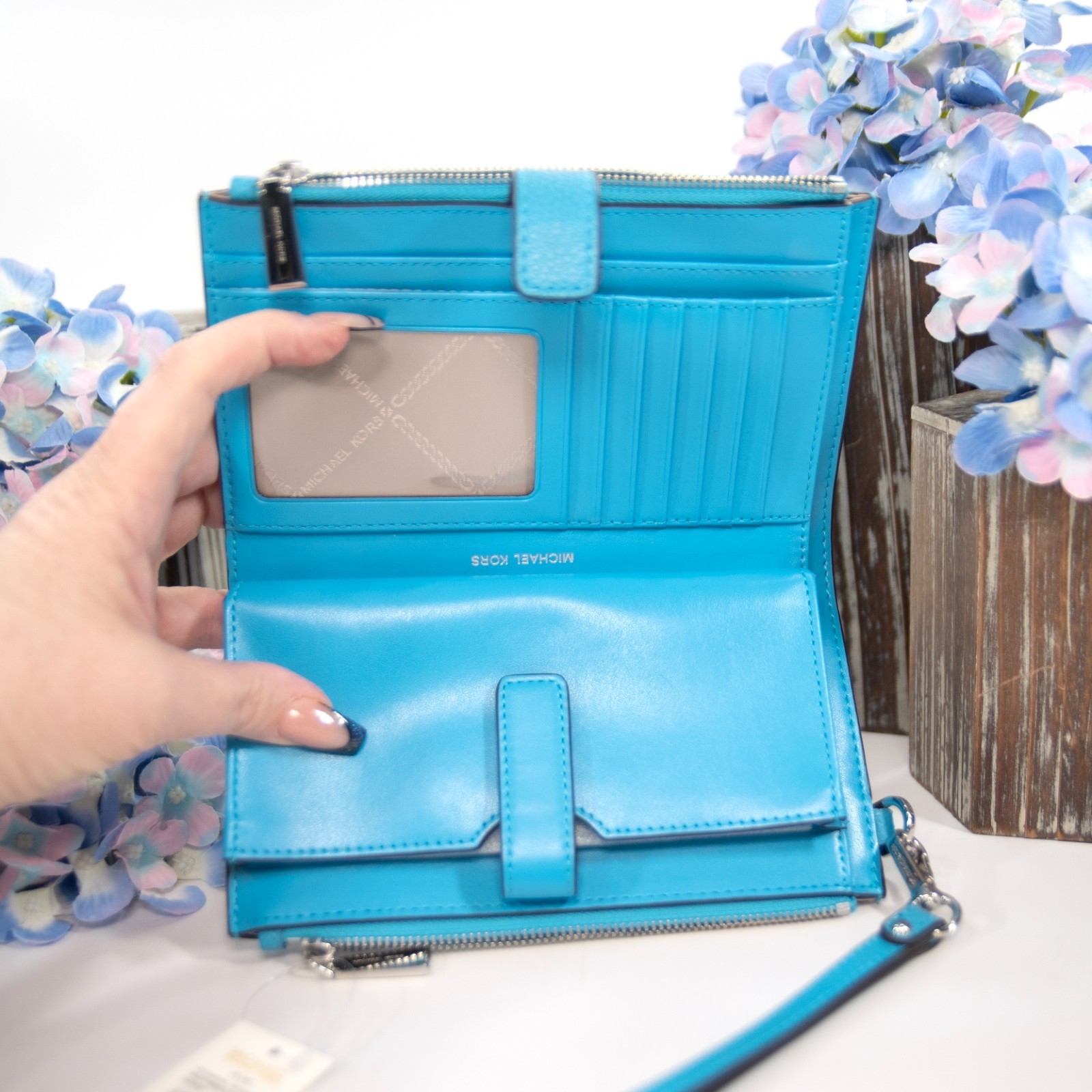 - Michael Kors Santorini Blue Leather Adele Double Zip Phone Wristlet NWT DEFECT!!